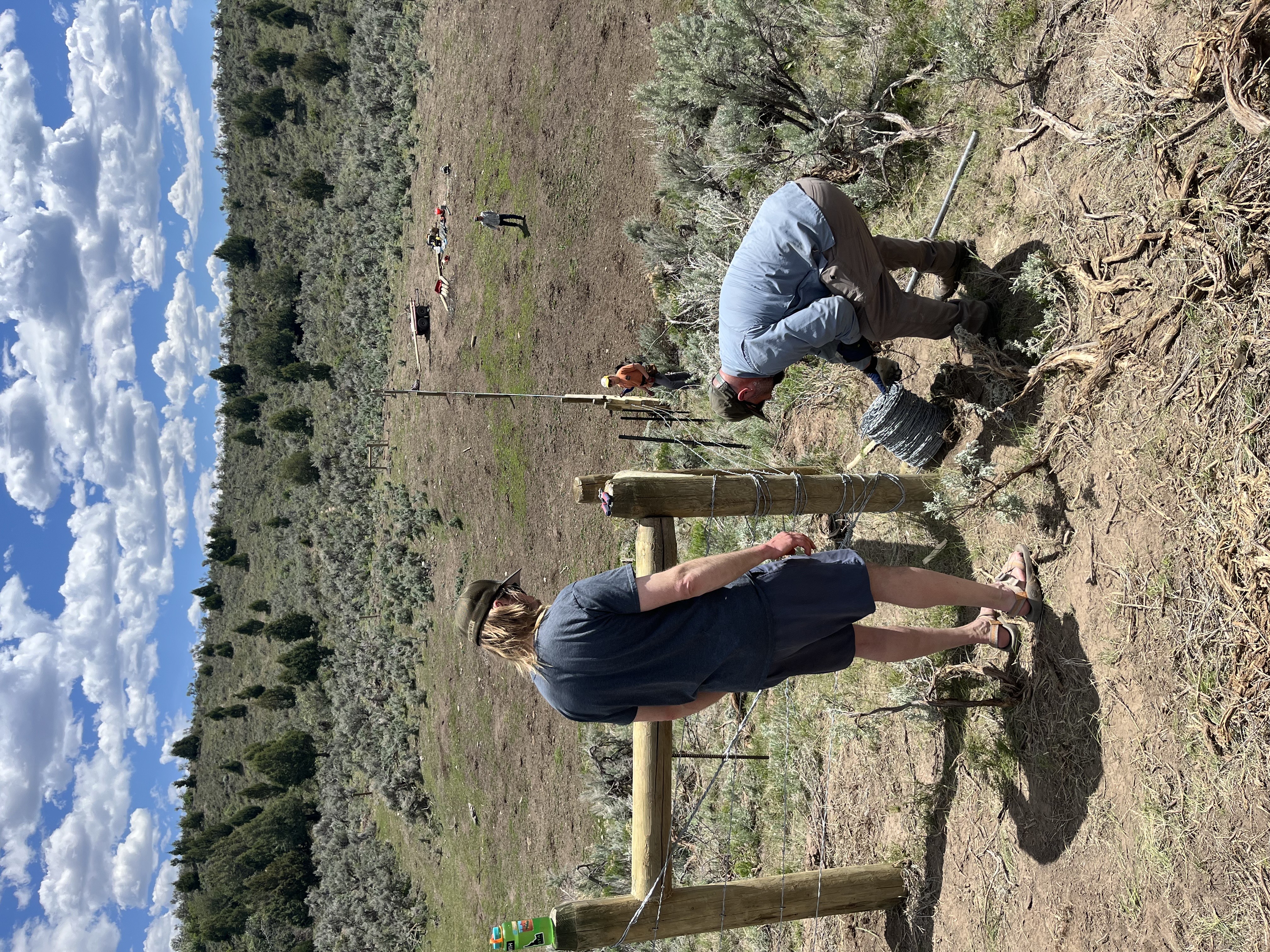 The difference in water clarity was evident overnight -when volunteers showed back up to the project site for their second day of volunteer work, they could see their efforts had already made a significant improvement to the landscape. Fences were built in the “lay down” style, to be unhooked and laid flat during the critical migration periods for Mule Deer and Elk of the spring and fall.
