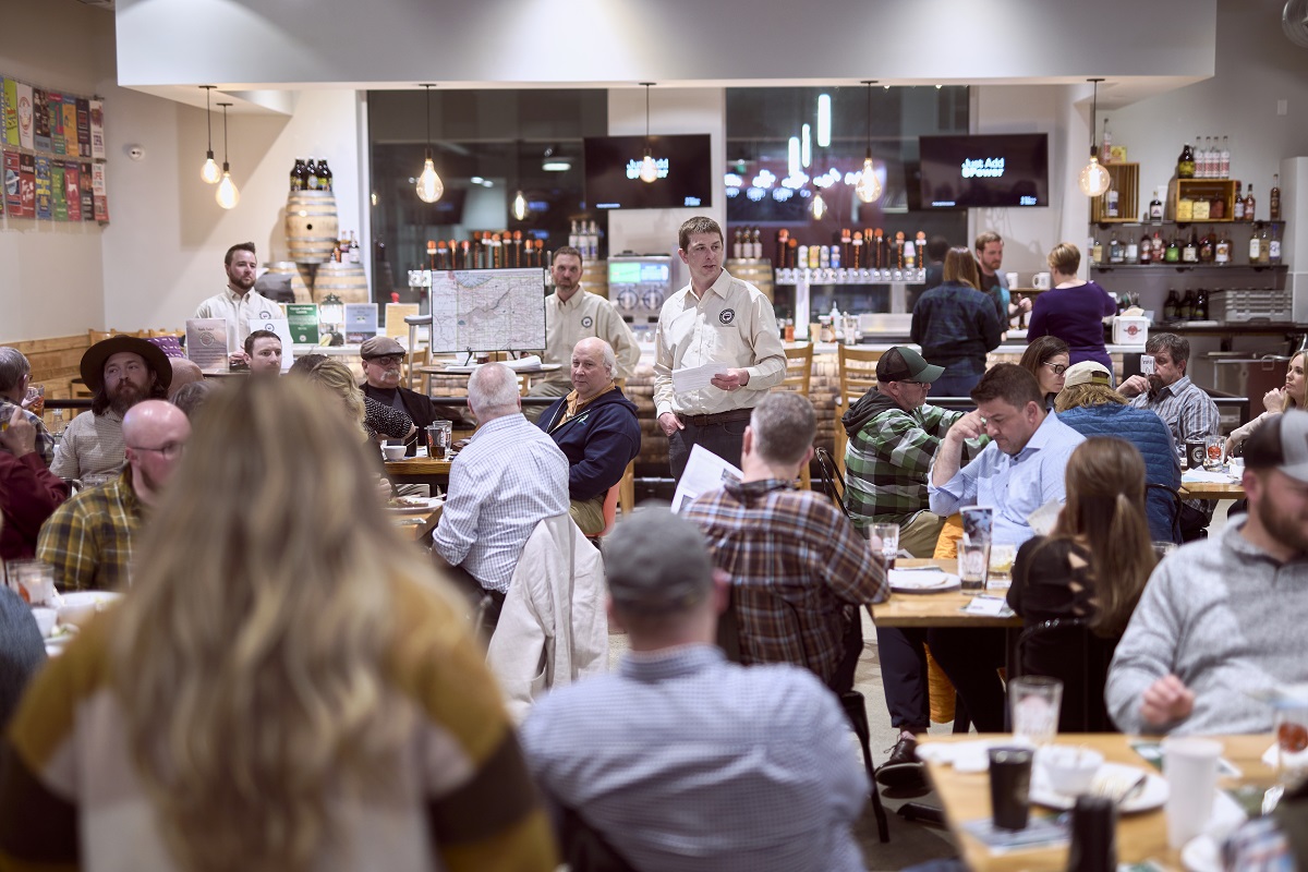 On Feb 25th we hosted our first Field to Table event which sold out in just a few days. Chefs Chris Eley of Smoking Goose Charcuterie, Neal Brown of Howe & Brown Hospitality, and Levi Kinney of Fishers Test Kitchen prepared an amazing array of wild game foods with meat donated from our very own chapter members. Included with this meal were presentations by Jim Sweeney and Jeff Manes who produced and authored “Everglades of the North; The Story of the Grand Kankakee Marsh” which is a film everyone should check out to understand the value of wetlands in habitat and water quality. The dinner was concluded with another presentation by Amos Rodriguez who is an instructor at White Pines Wilderness Academy and is known for his participation on Alone Season 7. He gave us a strong message on conservation and told us his story of how he came to pursue the outdoor experience. Check out his YouTube channel HERE. It was a night to remember with great conversation and great food! CLICK HERE to check out our Field to Table event recap.