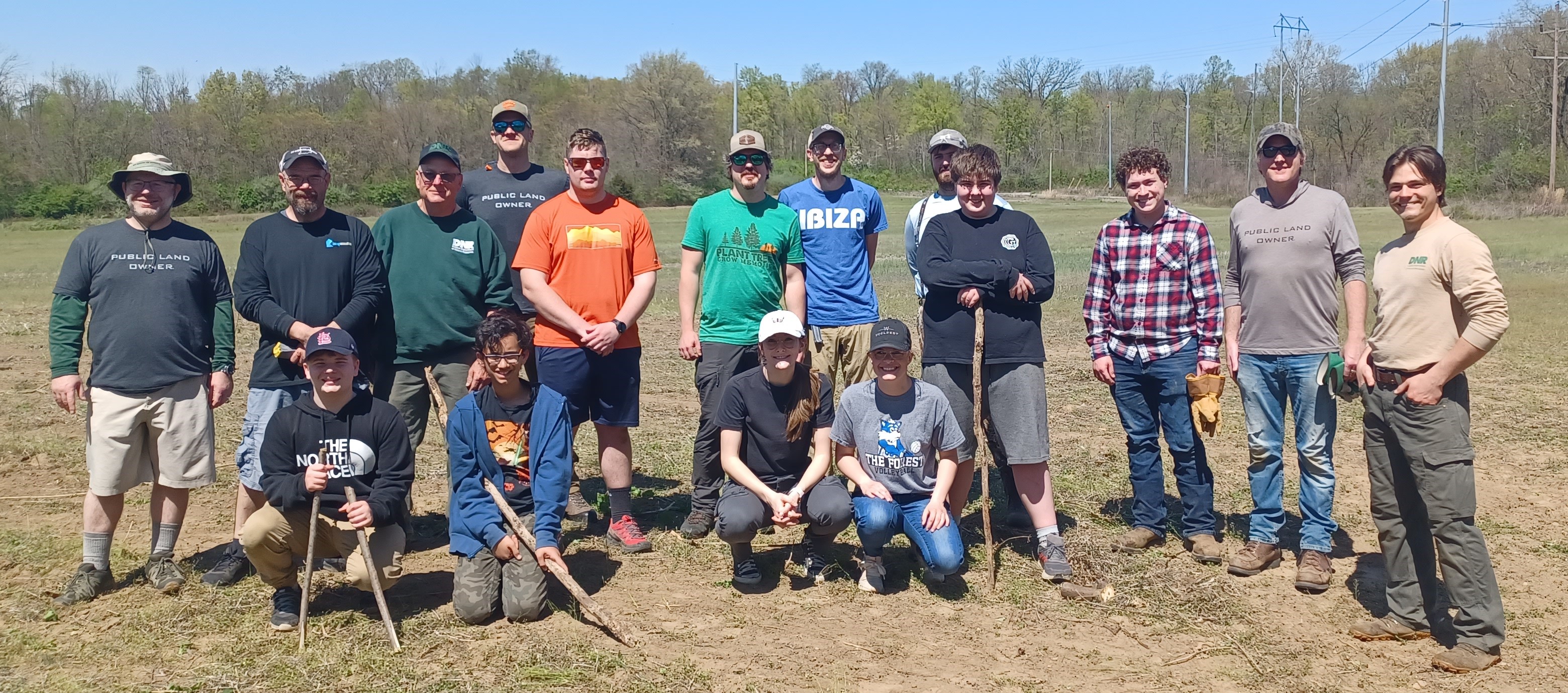 The Indiana Chapter was also busy putting our boots on the ground to help with projects across the state. At Lake Monroe, members spent a morning with the DNR helping construct new Hunter Check-In stations at Paynetown SRA. Then later on in spring members of the state chapter along with students from the BHA Indiana State Collegiate Club joined together and assisted DNR at the Wabashiki Fish and Wildlife Area clear brush and invasive plants on a newly acquired piece of public land. Just outside of Elkhart, Indiana BHA partnered with Trout Unlimited to pack-out trash and improve habitat on the Little Elkhart River. In May, we had 3 members obtain their Level B Bucker Certifications through the USFS which allows them to help with projects across the state such as trail clearing upkeep. Our chapter will continue to seek projects for members to get their hands dirty and perform the great grassroots efforts that we know through BHA!