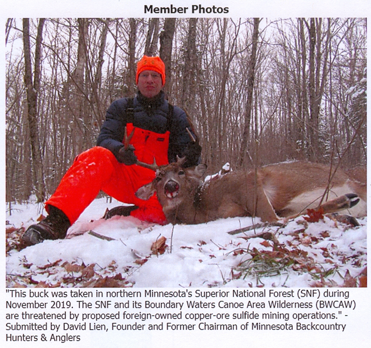 David A. Lien of Colorado Springs, Colorado, and formerly of Grand Rapids, is a former Air Force missile launch officer, author, and founder and former chairman of Minnesota Backcountry Hunters & Anglers (backcountryhunters.org).