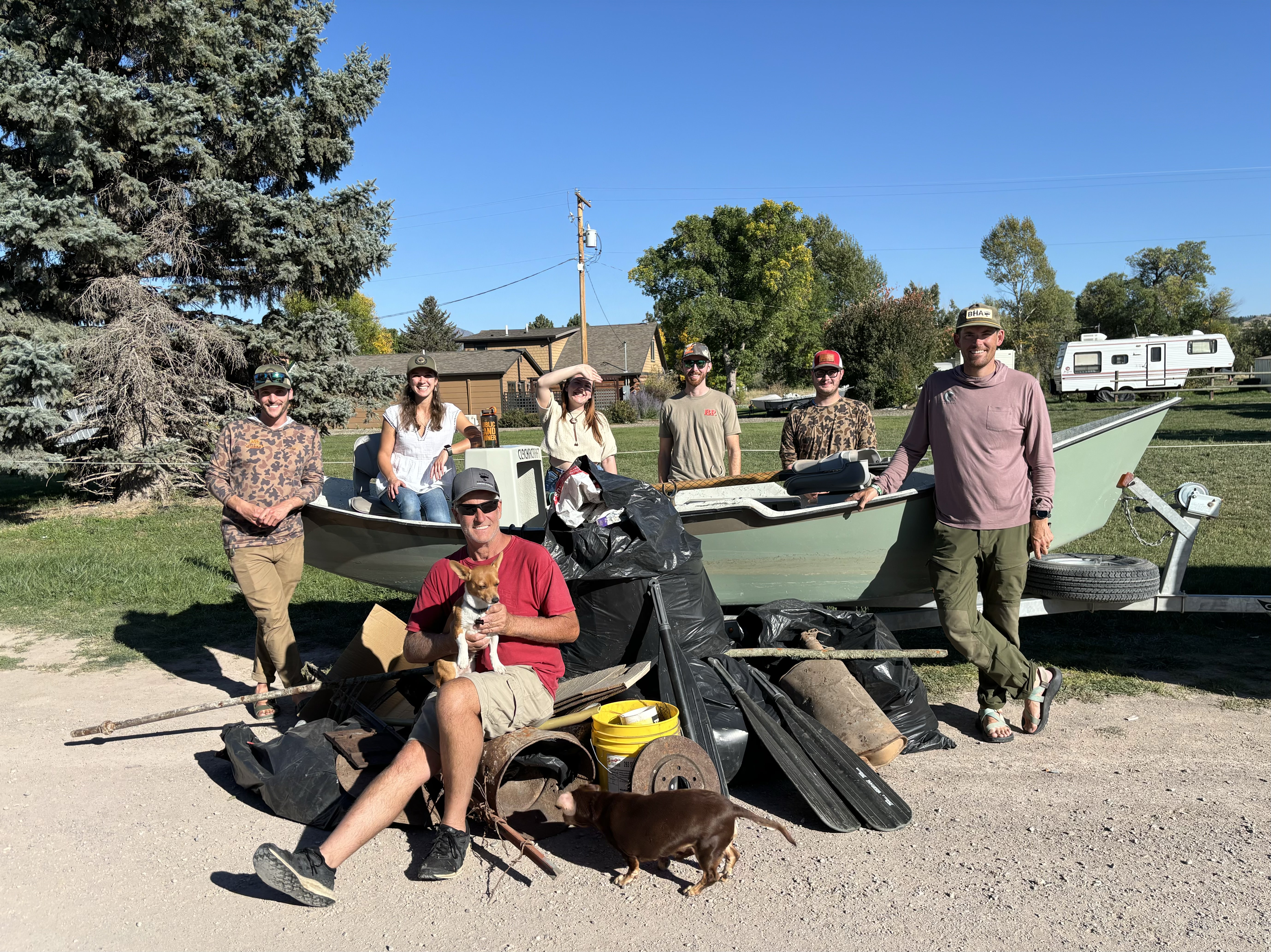 After a quick meeting at the Craig Taphouse in the morning to distribute lunches and trash bags, volunteers paired up and dispersed along the river. Special attention was paid to fishing access sites, campgrounds, boat ramps, islands, and high-traffic banks. Volunteers included humans of all ages and even a few dogs. After an arduous but rewarding day, volunteers gathered again at the Craig Taphouse to consolidate trash, have a drink, and take a group photo. The day’s trash bounty was impressive, including four tires, countless wads of fishing line, lots of scrap metal, a muffler, and much more. Special thanks go to the Craig Taphouse for hosting the event, OnX for sponsoring, and all the volunteers for donating their time and passion for public lands and water!