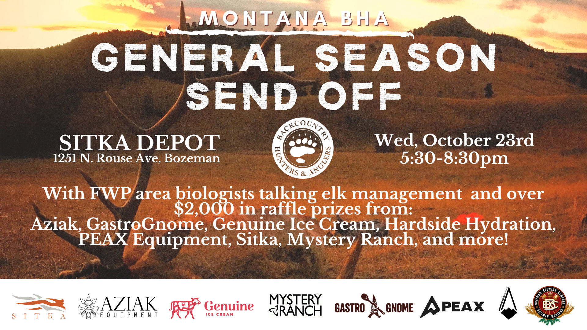 We'll be joined again by MT FWP Wildlife biologists, Michael Yarnall (Livingston) and Julie Cunningham (Bozeman), who will talk about elk management and regulation changes in the area and will be available to answer questions. And no party is complete without a chance to win some new gear from Mystery Ranch, Aziak Equipment, Hardside Hydration, Gastrognome, and more!