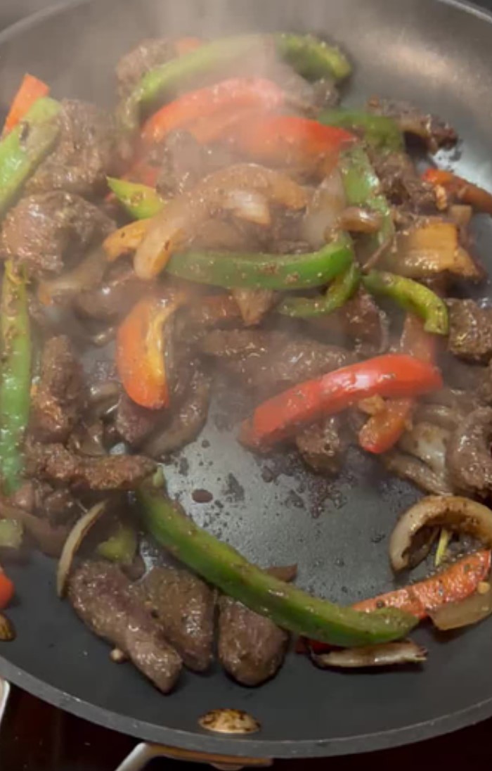 Thinly slice the onion and both peppers into strips. Add cooking oil to a hot pan, and toss in the onions. Once the onions begin to turn translucent, add the peppers. When the peppers start to soften, add the duck, Worcestershire sauce, and minced garlic. Cook the duck to medium—this won’t take long if it's sliced thinly.