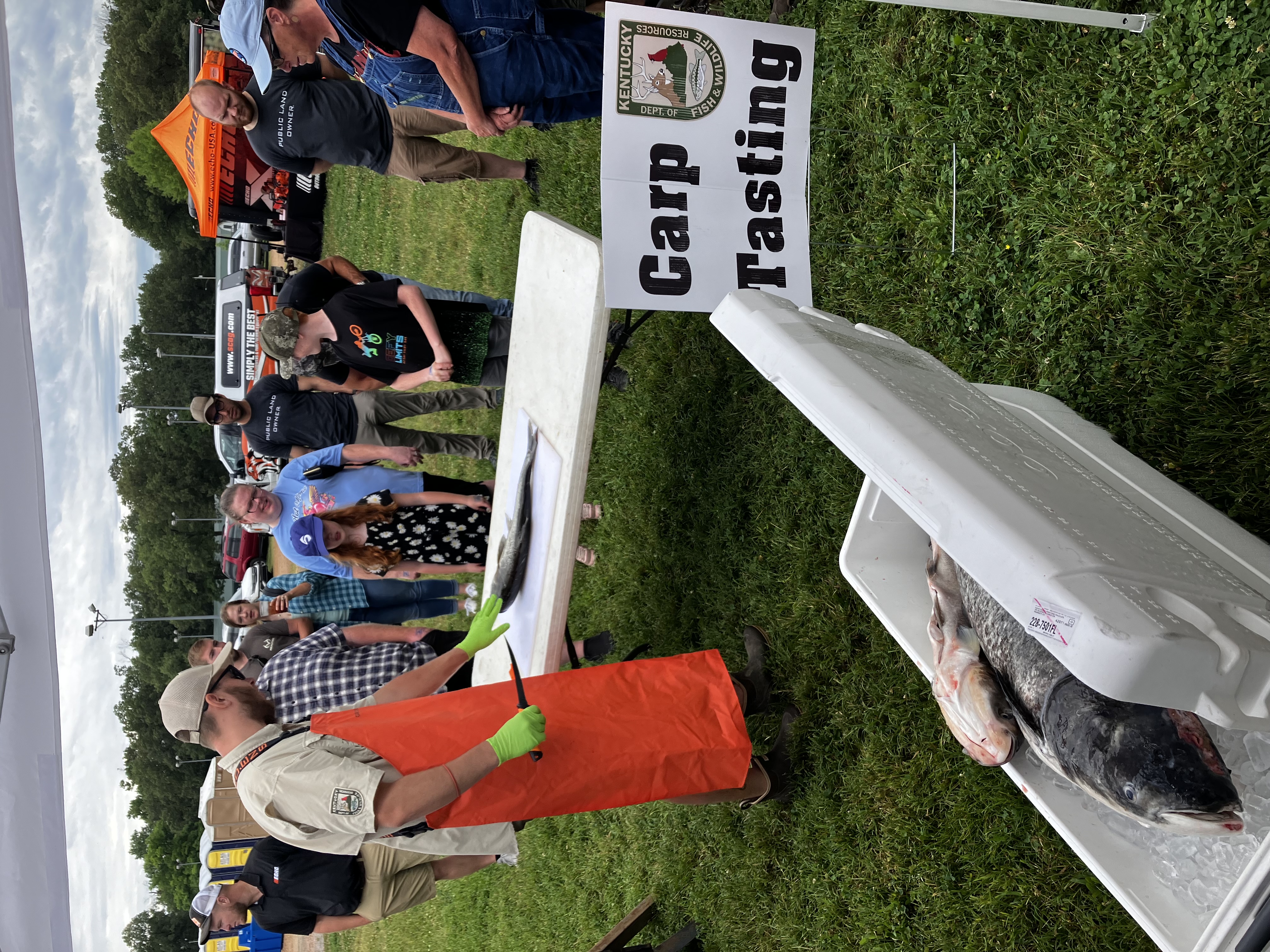 Keeping in the topic of wild game, we certainly want to highlight the effort brought by the KY Fish and Wildlife Fisheries Biologists and the Kentucky Fish and Wildlife Information & Education Division for providing awesome presentations on filleting and cooking carp! Asian Carp have infiltrated many of our waters and as horrific as these invasive fish can be to our waterways, they are delicious! A huge thanks to these professionals for these engaging demonstrations and carp tastings! Follow Western Kentucky Fisheries on their FB Page by CLICKING HERE.