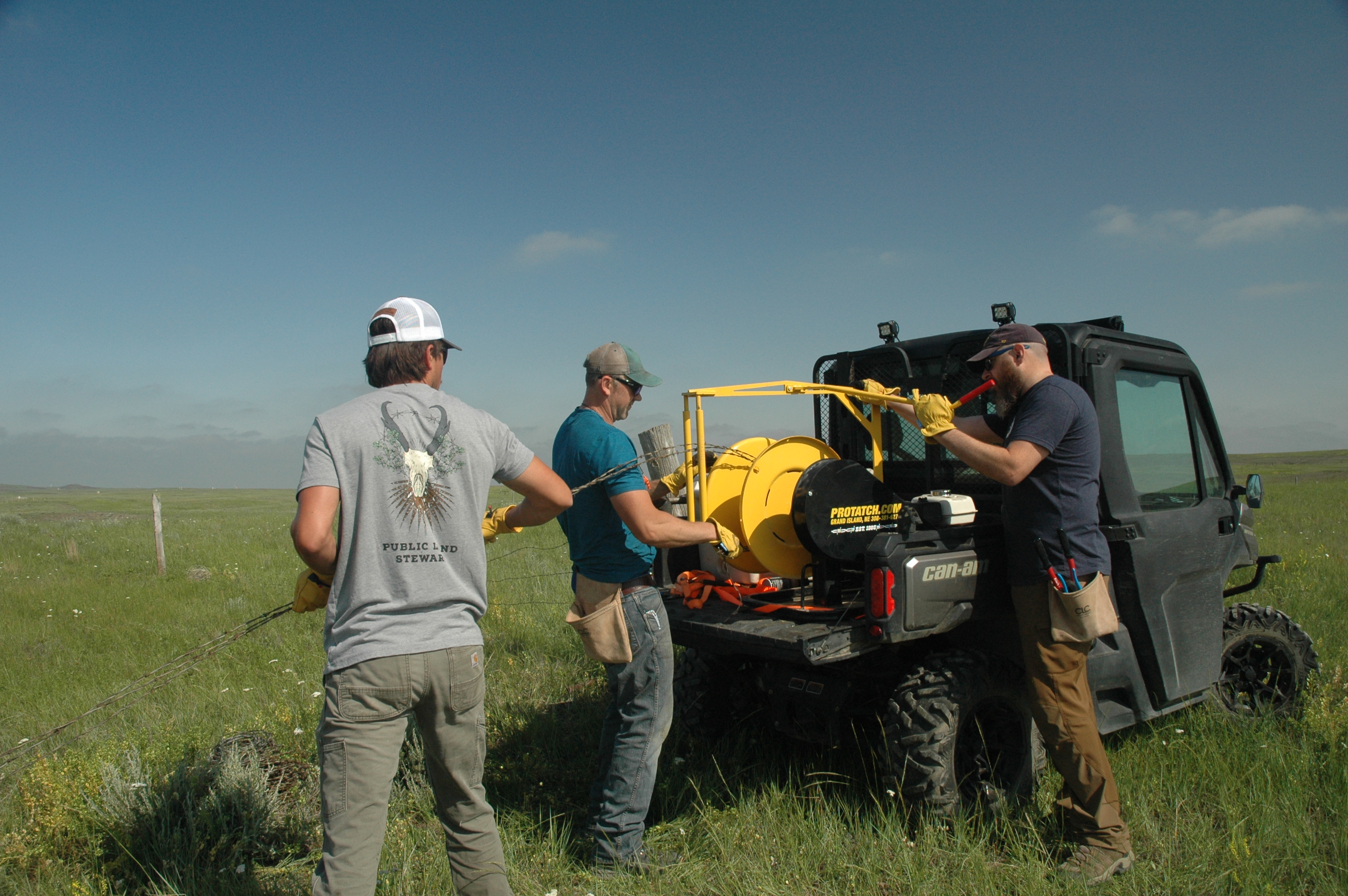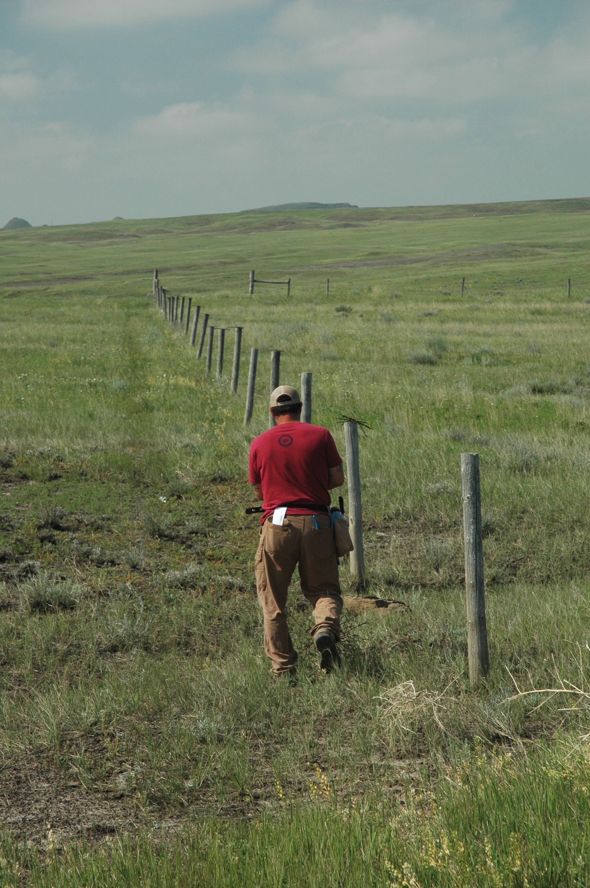 Both by hand, and with the help of a gas-powered wire winder, over 2 miles of 5 strand barbed wire fence was completely removed from the landscape, as well as, a half mile of woven/ sheep wire. An additional half mile of the bottom 2 barbed wire strands from a different fence line were removed for later modification to smooth wire with the proper hight off the ground, per wildlife friendly specifications.