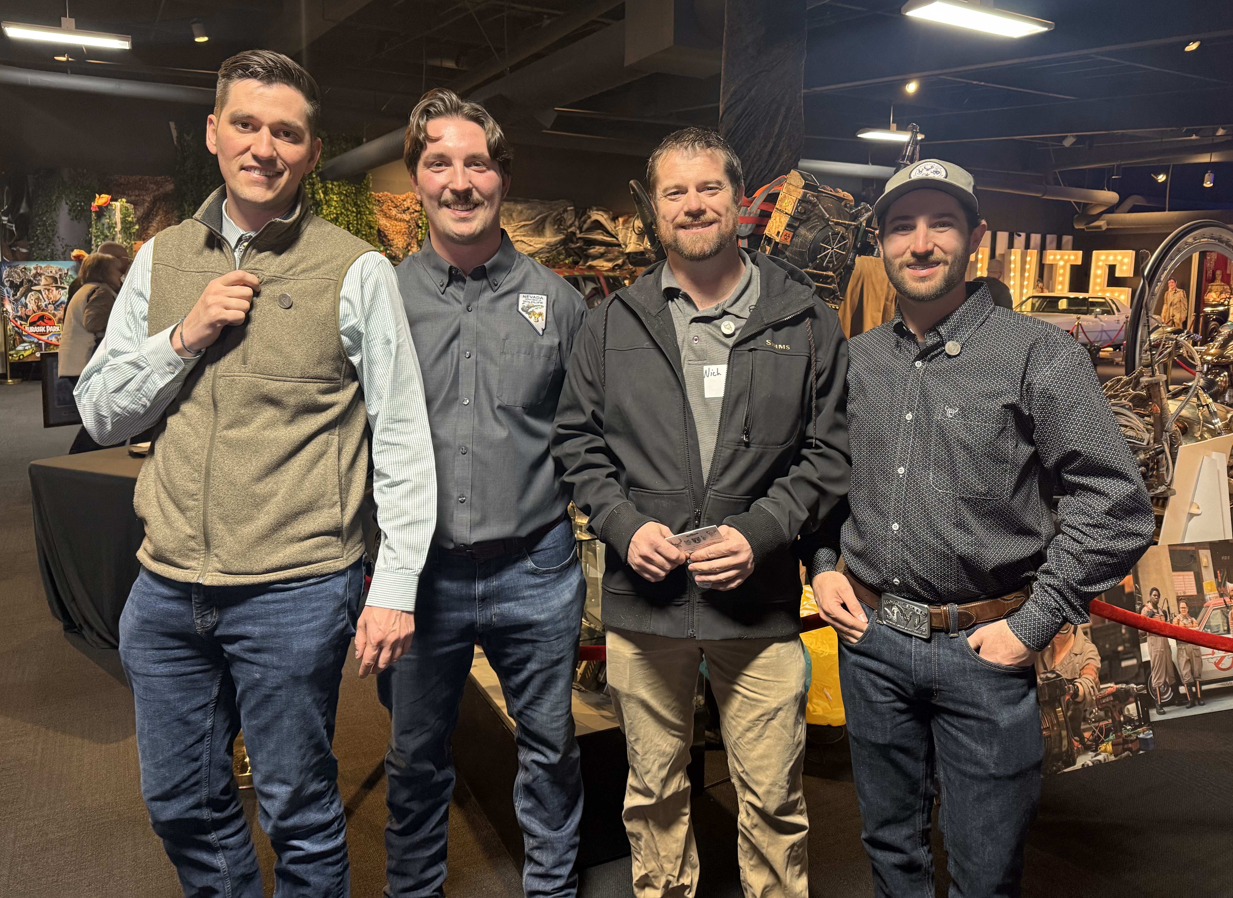 BHA Nevada board members and hunter education volunteers Bryce Pollock, Nich Maus, and Patrick Romano with NDOW Conservation Educator Logan Klonicke at this years hunter education instructors dinner.