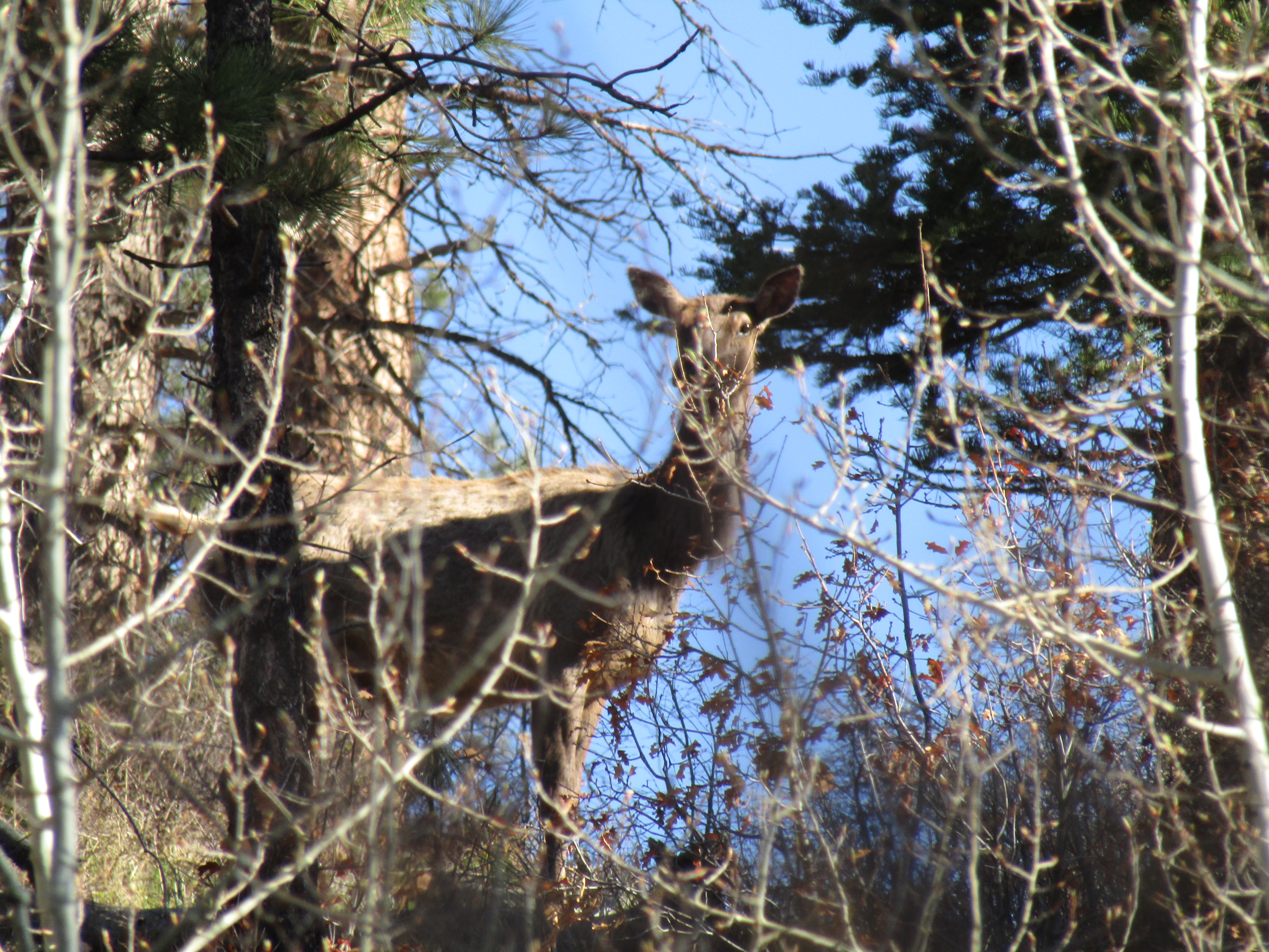 Day 5 (10/29/25): Leave camp at 0515 (27 degrees). Elk start making noise in thick cover to the south at 0730 and continue until about 0830. Sounds like 10-15 elk but can’t be sure. Have one in the crosshairs but can’t see its head. Also spot a mule deer buck and what was likely a bull elk (only see it from behind) in thick brush.