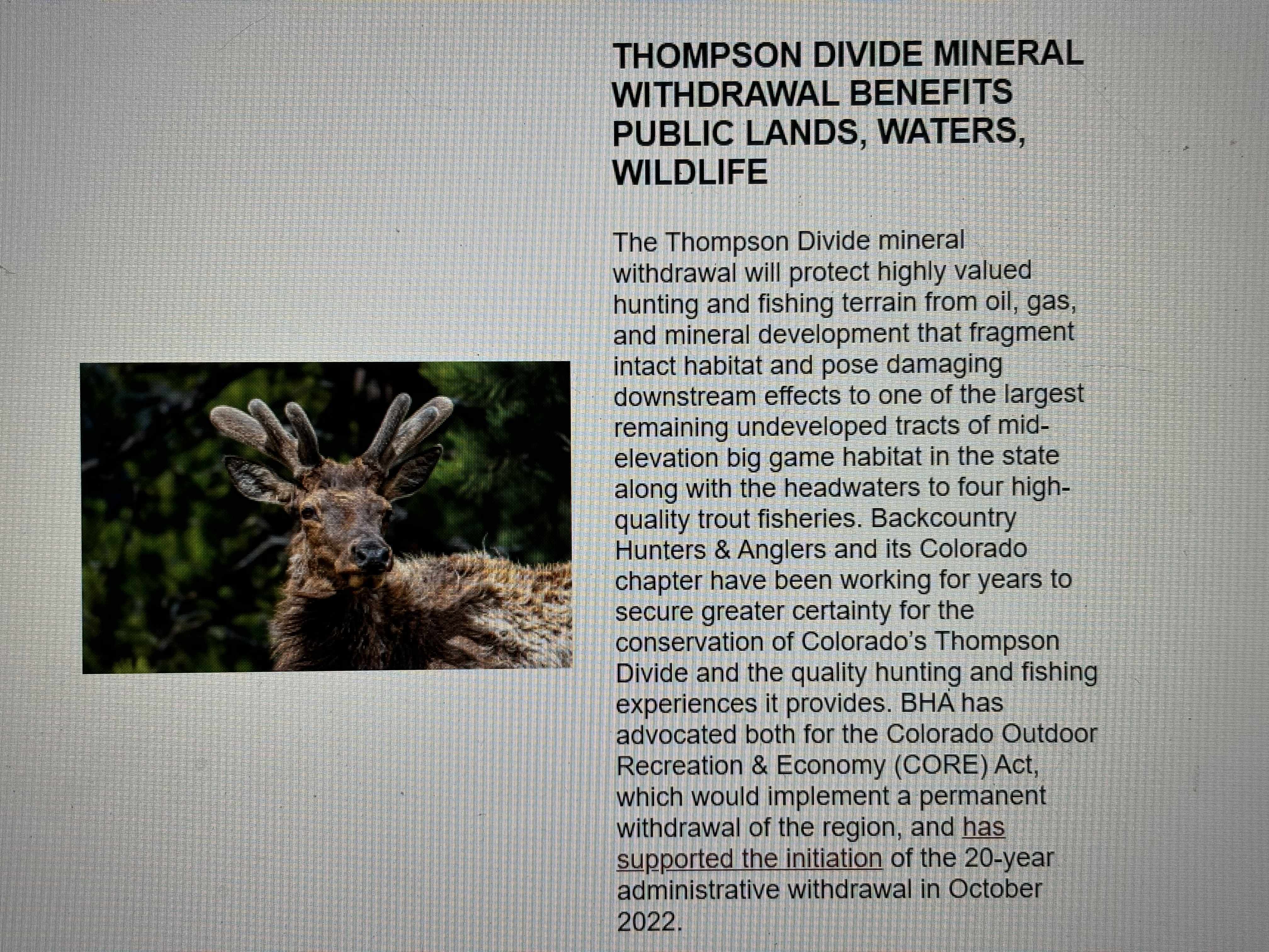 -Thomas Plank. “Thompson Divide Mineral Withdrawal Benefits Public Lands, Waters, Wildlife.” Backcountry Hunters & Anglers: 4/3/24.