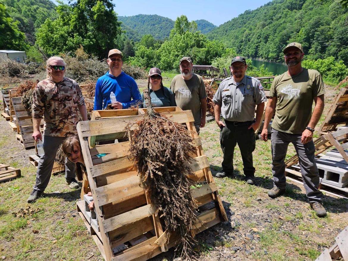 Between turkey season and archery deer season, we try to get all our habitat projects completed. This is a rush of work out on our public lands. We do it this way, so as not to impede or encroach on any public land users during an active hunting season. The first habitat project was at Buckhorn Lake, where volunteers helped the KDFWR and the U.S. Army Corps of Engineers (USACE) build fish habitat. Every June since we earned our chapter’s charter, we have conducted an in-person meeting of all elected chapter leaders. It is at this meeting that we update our three-year plan, conduct executive board elections and adjust the bylaws as necessary. We always end the meeting with a wild game and fish potluck, which we may open to the general membership in the future – stay tuned. And as usual, our diehard members in the 6th District hosted another monthly pint night.