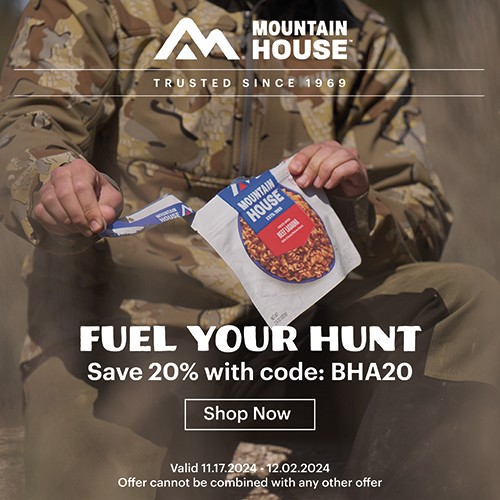 Get ready to level up your next hunting trip with mouthwatering, ready-in-minutes meals from our friends at Mountain House! From 11/17/24 to 12/2/24, you can score an exclusive 20% off by using discount code BHA20 at checkout. Fuel your adventure and make every moment in the backcountry count! SHOP NOW>