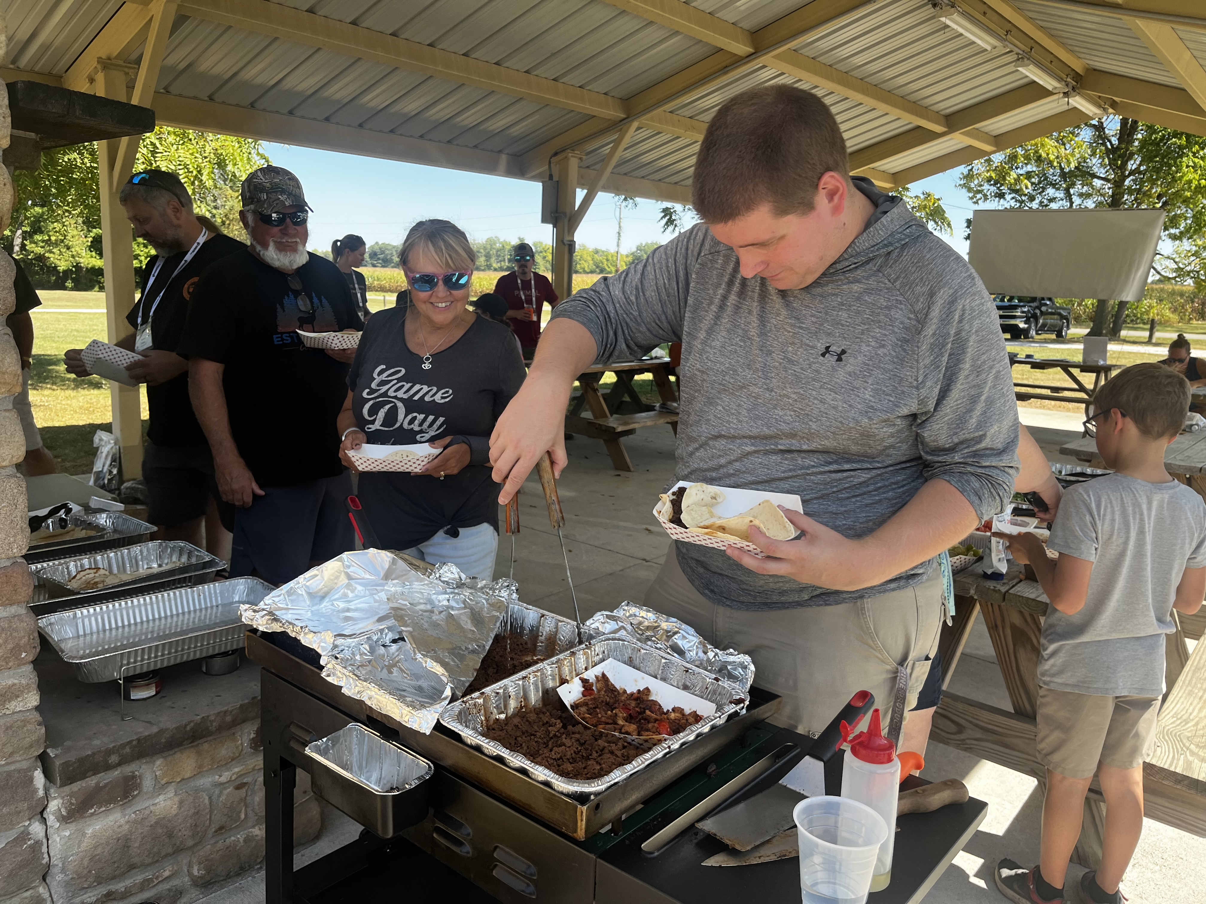 Saturday began with a stewardship event, including trail work, clearing brush to create better access for shore fishing, and paddling kayaks to pick up trash along the shoreline. After that, the group gathered for a wild game taco bar, provided for free by members of the Indiana Chapter Board of Directors. This included caribou, smoked barbacoa venison, and wild turkey fajitas.