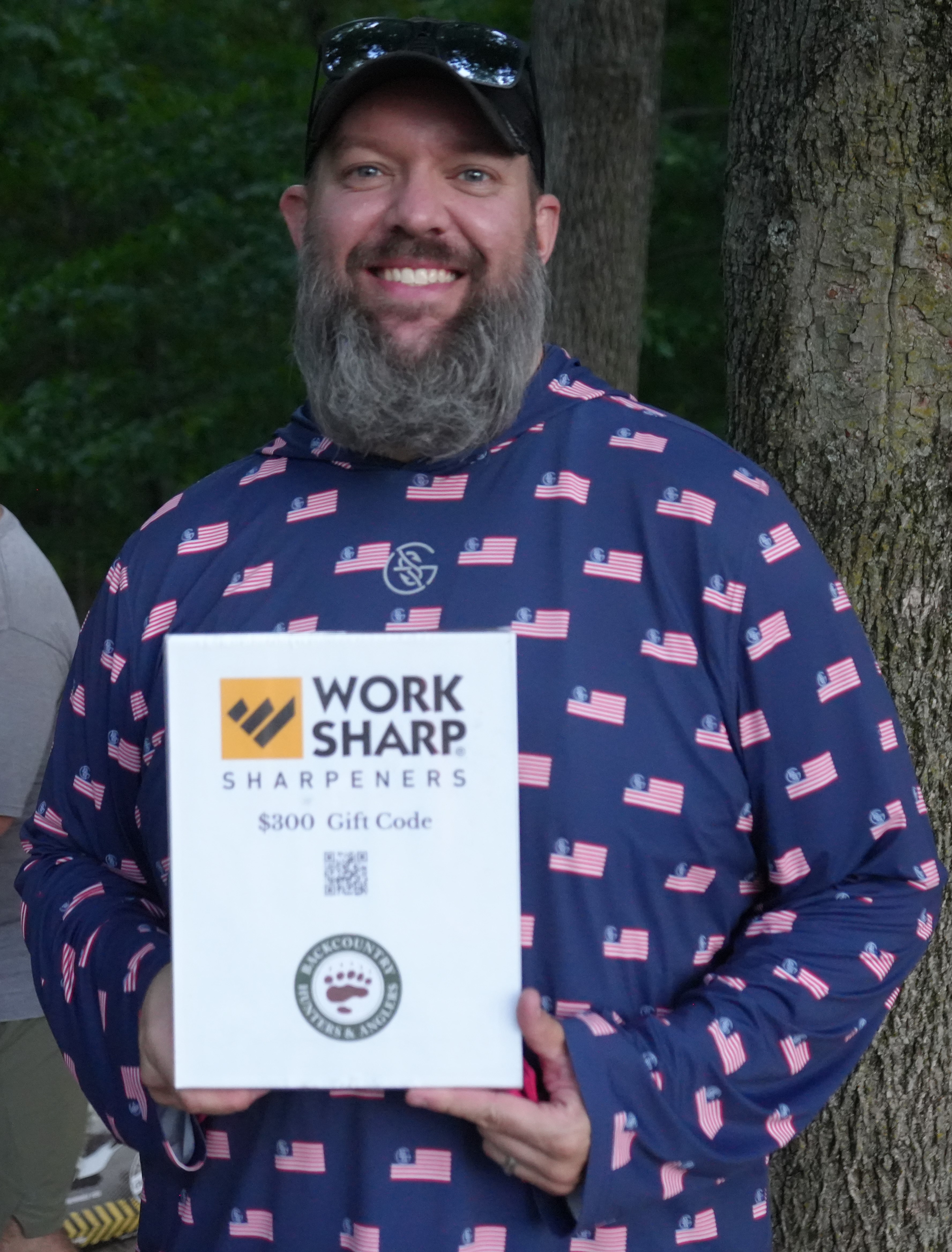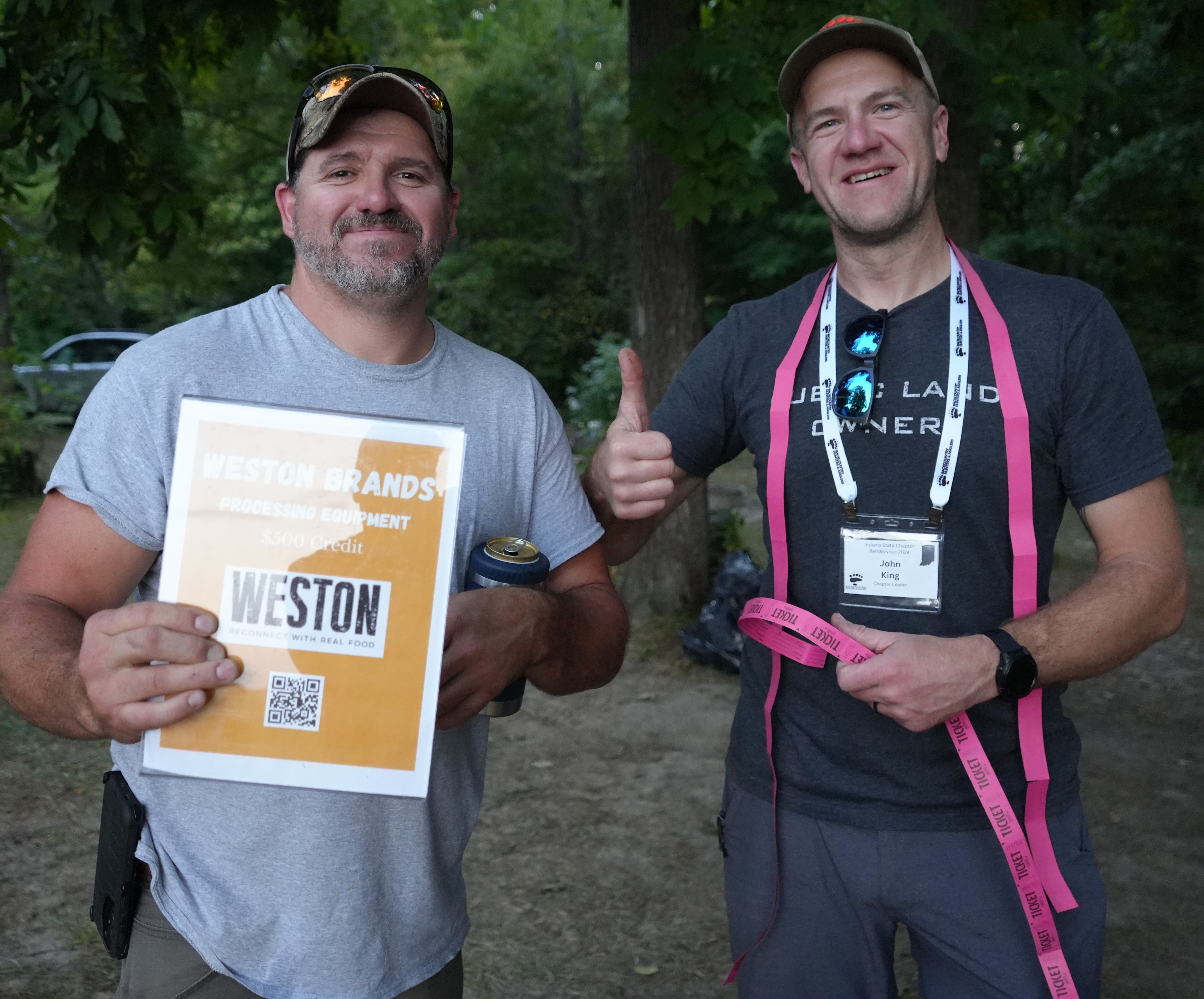 Some great prizes were available this year from our sponsors, including swag bags with items from the Indiana Turn-In-a-Poacher, deer scent from Hoosier Trapping Supply, our state-level sponsor who also donated an awesome coyote trapping kit. We also had a BullDog XP Archery target, ground blinds from FeraDyne Outdoors, binoculars from Vortex, a dozen full body speck decoys donated from our members, and gift cards from Waltons, SportDog, and Work Sharp.