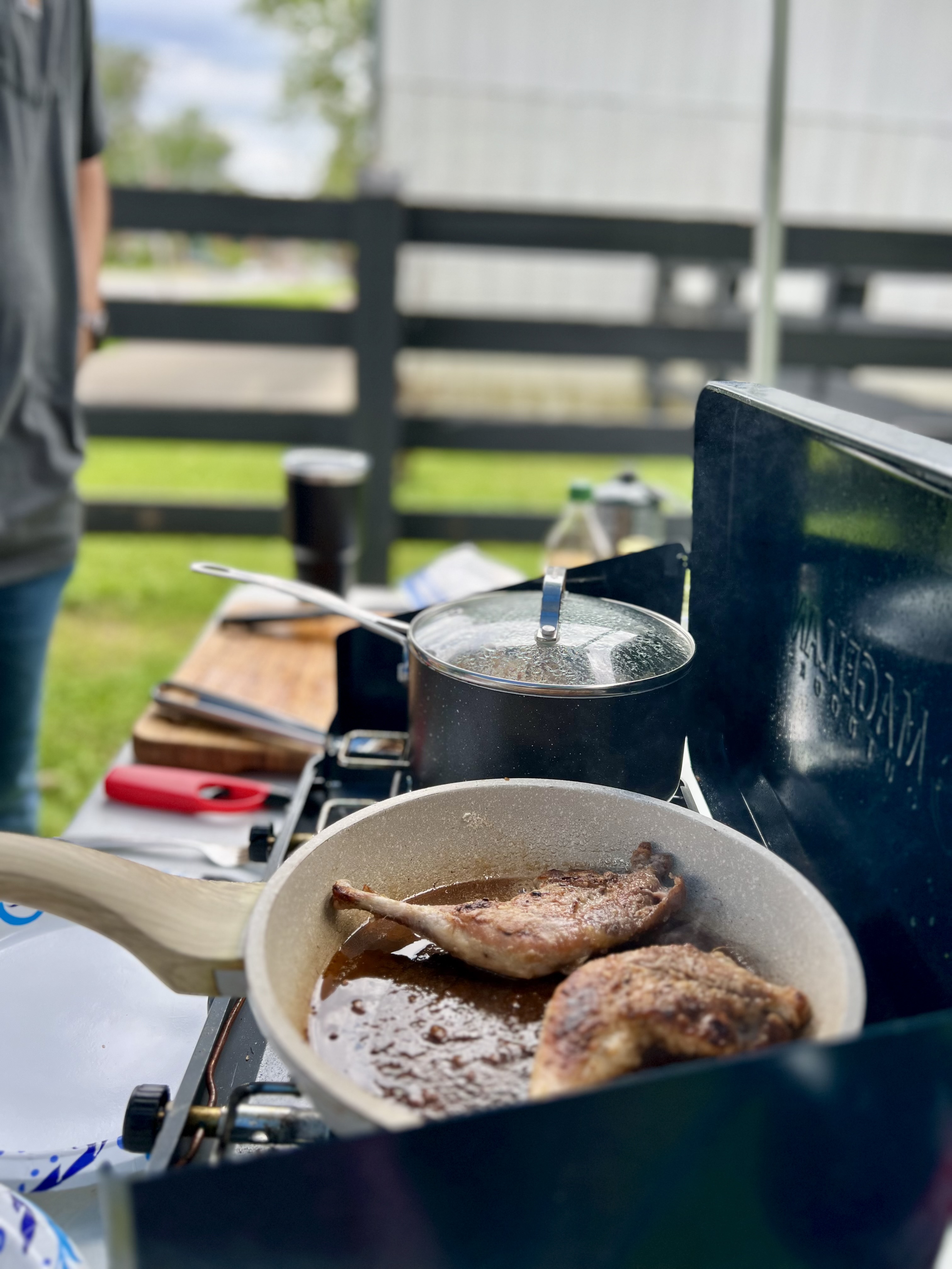 What’s a conversation about hunting and fishing without talking about Wild Game Cooking? Small game is wonderful table fare and it’s how many folks learned to cook wild game. Many people share a common history of “Grandma’s Fried Rabbit Recipe”, so at our first Small Game Bootcamp we hosted a Wild Game Cookoff featuring rabbit! Some amazing teams spent time preparing their favorite rabbit recipe and the outcome was incredible! The winner received an 8” culinary knife from Boothill Blades plus a free entry into the World Champion Squirrel Cookoff hosted in Arkansas. Additional prizes were a 12” Carbon Fry Skillet from Made In, and a beautiful wooden cutting board from Boothill Kitchen!