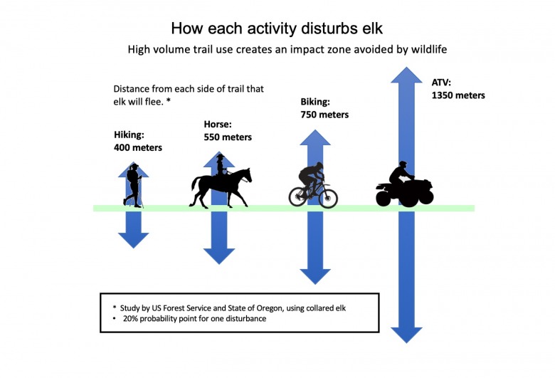 [24] Theodore Roosevelt Conservation Partnership (TRCP). “Outdoor Recreation and Elk: A Colorado Case Study. Where do elk habitat and recreational trails overlap in Colorado, and why does it matter?” TRCP Case Study: 2022; Liz Rose. “40% of Most Important Colorado Elk Habitat Is Affected by Trail Use.” Theodore Roosevelt Conservation Partnership: 9/27/22.