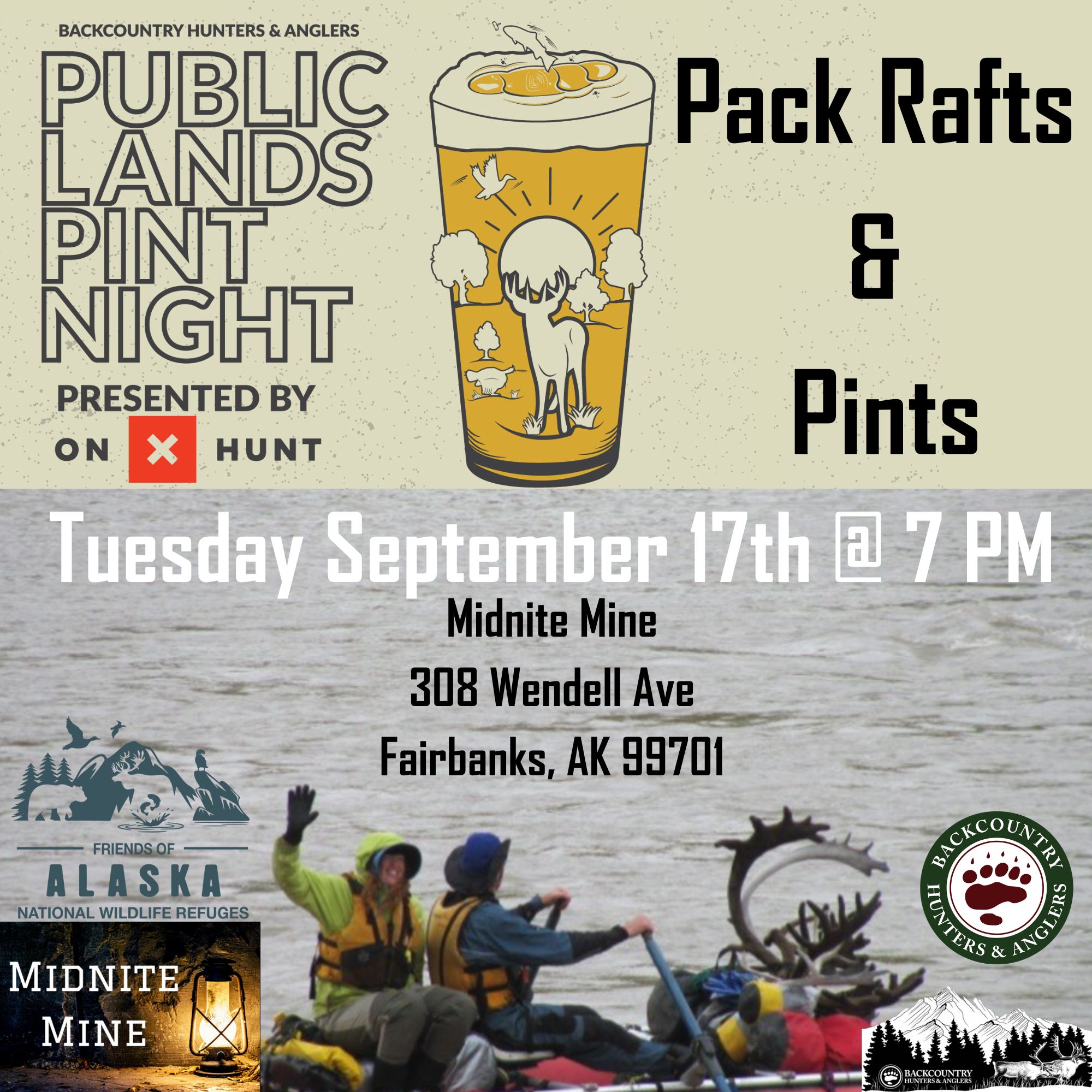 Join us after the presentation, at 7PM, across the street at Midnite Mine for an Alaska BHA Pint Night on Float Hunts.