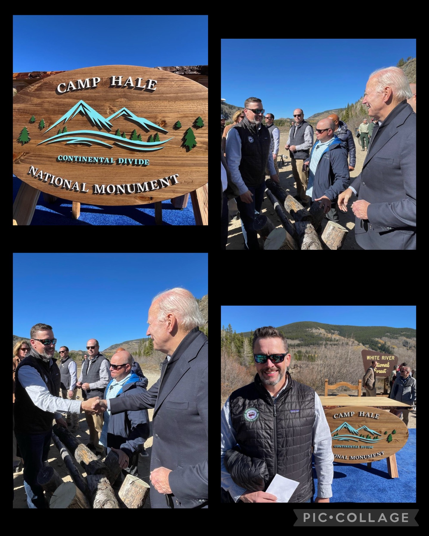 One recent example of those accomplishments here in Colorado was the designation of Camp Hale-Continental Divide National Monument by President Joe Biden on October 22, 2022.[6] John was there to represent BHA at the announcement. Camp Hale is located in central Colorado between Red Cliff and Leadville in the Eagle River Valley at an elevation of 9,238 feet.[7]