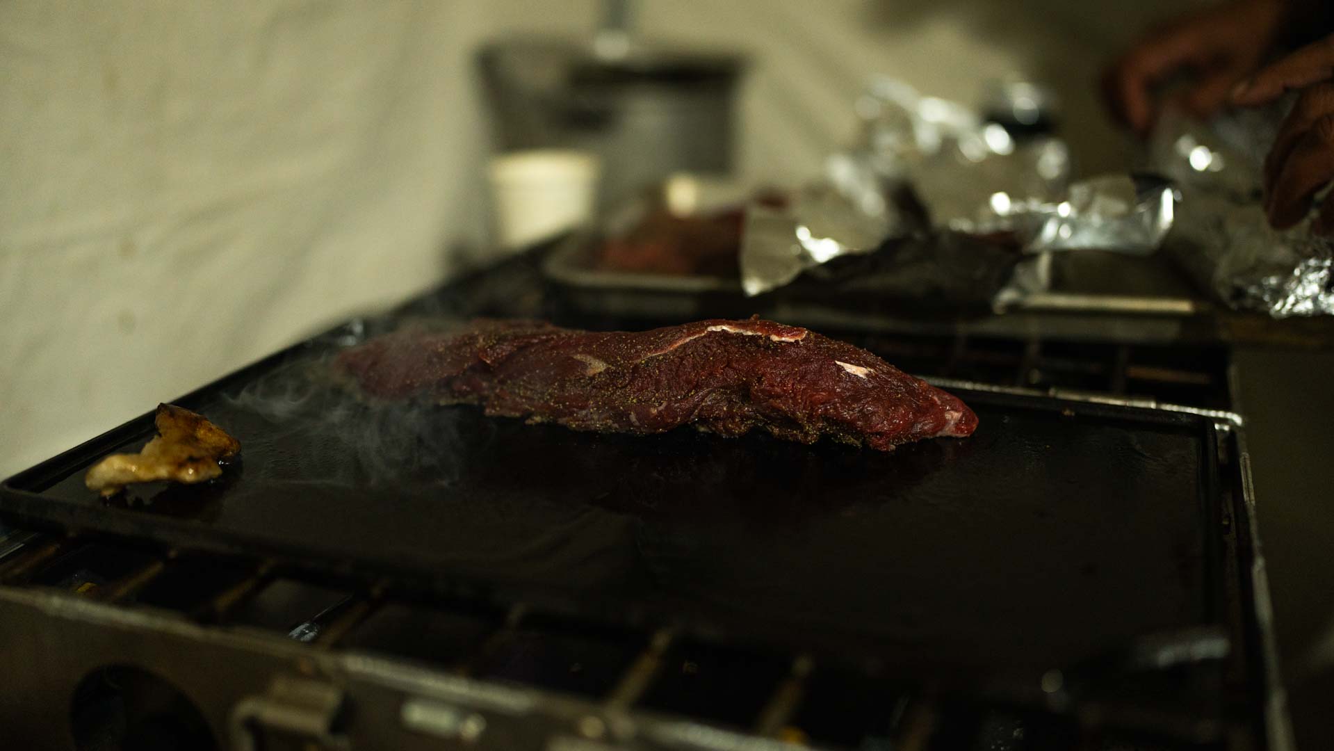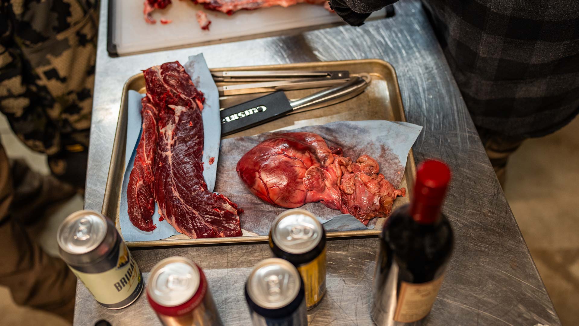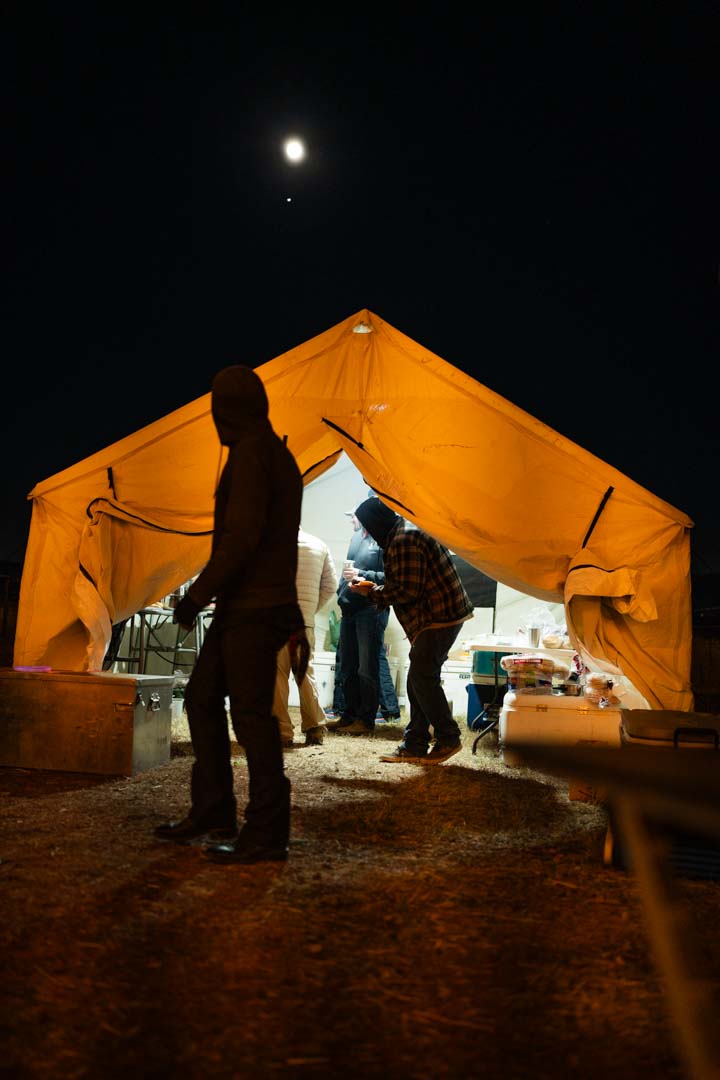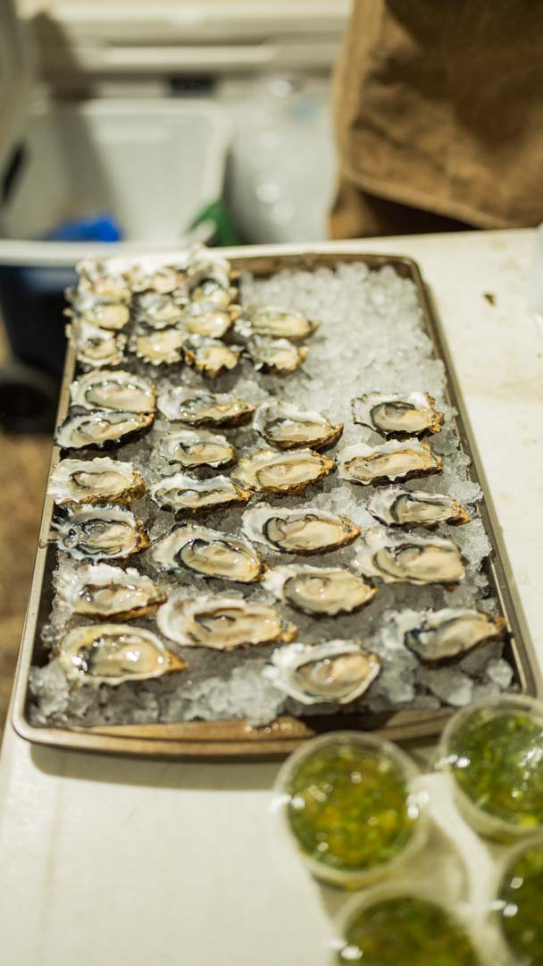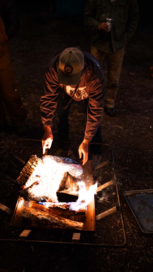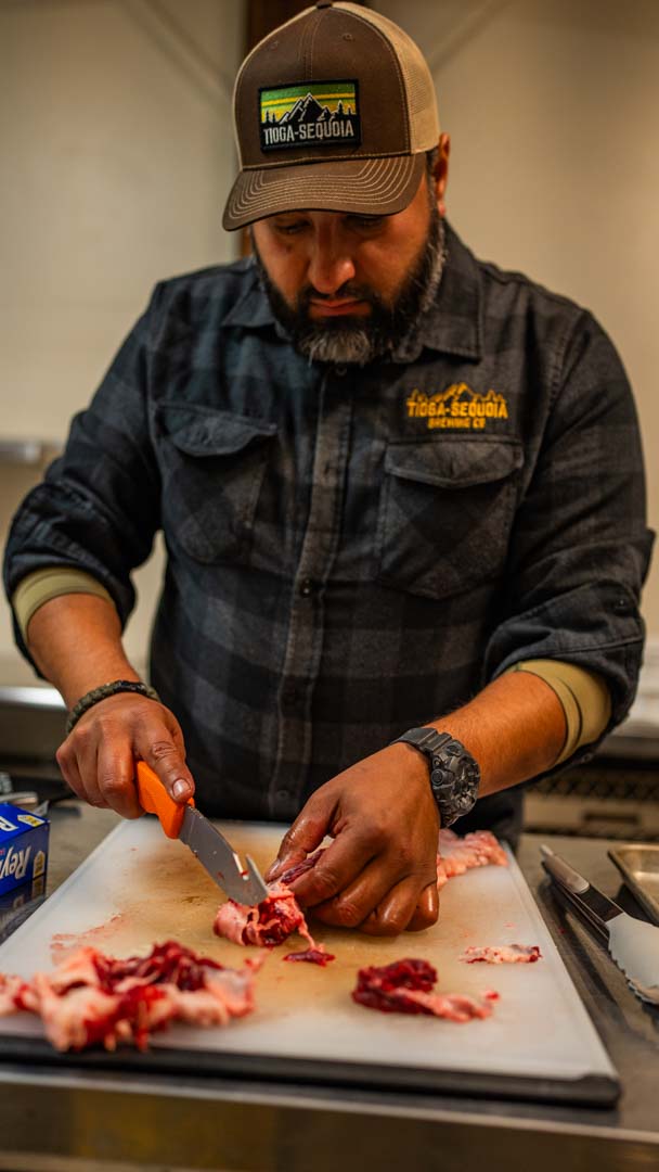 Whispers circled around the campfire during Friday night’s wild game potluck as a group of hunters and non-hunters volunteered to head out into the darkness to help find a dead black bear. Feelings of optimism and excitement circled camp throughout the rest of the night as our group of ~30 volunteers enjoyed a juicy elk roast appetizer, followed by freshly shucked, raw oysters, wild boar chili and boar enchiladas, grouse pozole, fresh bread, and of course, Costco mac & cheese for good measure. All of this delicious food was paired with beer donated by the Brewer’s Cabinet and IMBIB Custom Brews out of Reno, as well as from Tioga Sequoia Brewing Company out of Fresno – not to mention wonderful wine from San Joaquin Wine Company.