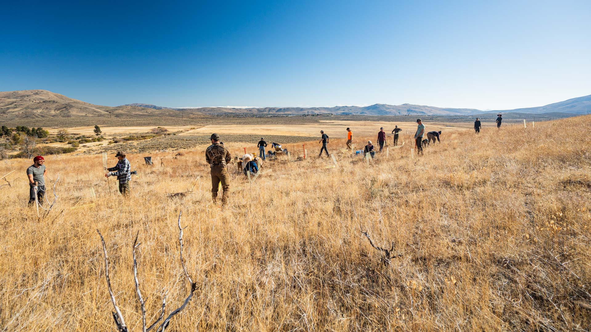 For five days volunteers braved below freezing temperatures while camping and planting to help restore the Hallelujah Junction Wildlife Area from the impacts of the Loyalton Fire that wiped out critical winter range on these borderlands between California and Nevada. In the evenings participants gathered in the Sierra Valley for live bands, beer, raffles, good company and close gatherings around the campfire.
