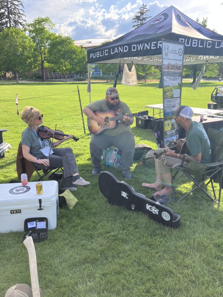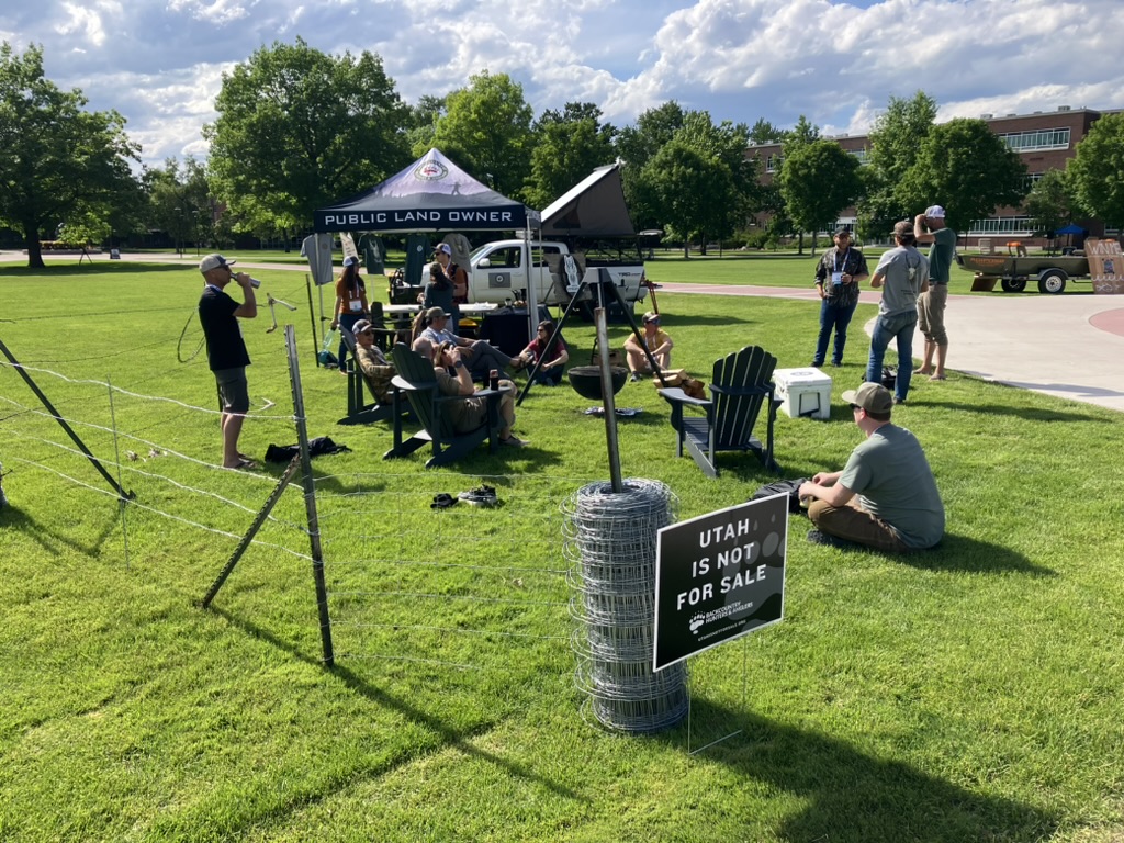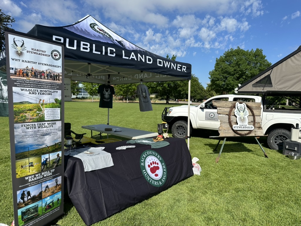 Through the rest of the North American Rendezvous weekend, BHA’s Stewardship Team hosted an interactive booth on the University of Montana's outdoor Oval. Designed to mirror a typical project site and camp, the setup included many of the tools used in the field to accomplish stewardship work, interpretive signage, and a mock fence-line demonstrating both problematic fencing and wildlife-friendly alternatives.