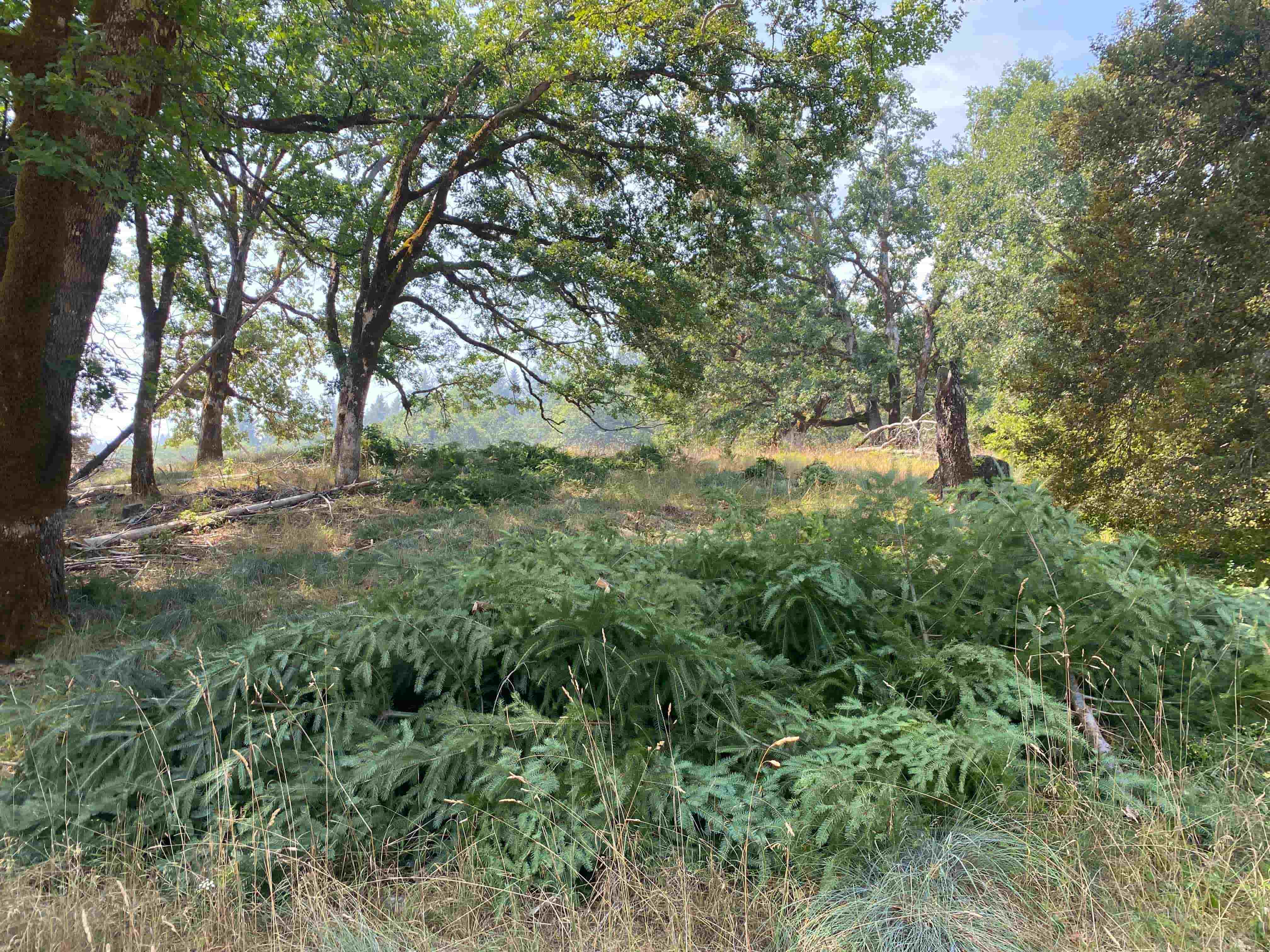 Equipped with axes, hand saws, loppers and hatchets the crew removed douglas-fir trees with extreme prejudice. Hacks, hoots and shouts of "timber" could be heard resounding throughout the prairie as the crew mowed through any trees in their path with the instant gratification of opening up oak stands and paths through the prairie. All felled trees were put in piles with major limbs removed to facilitate future control burning or expedited decomposition in order to reduce fire risk.