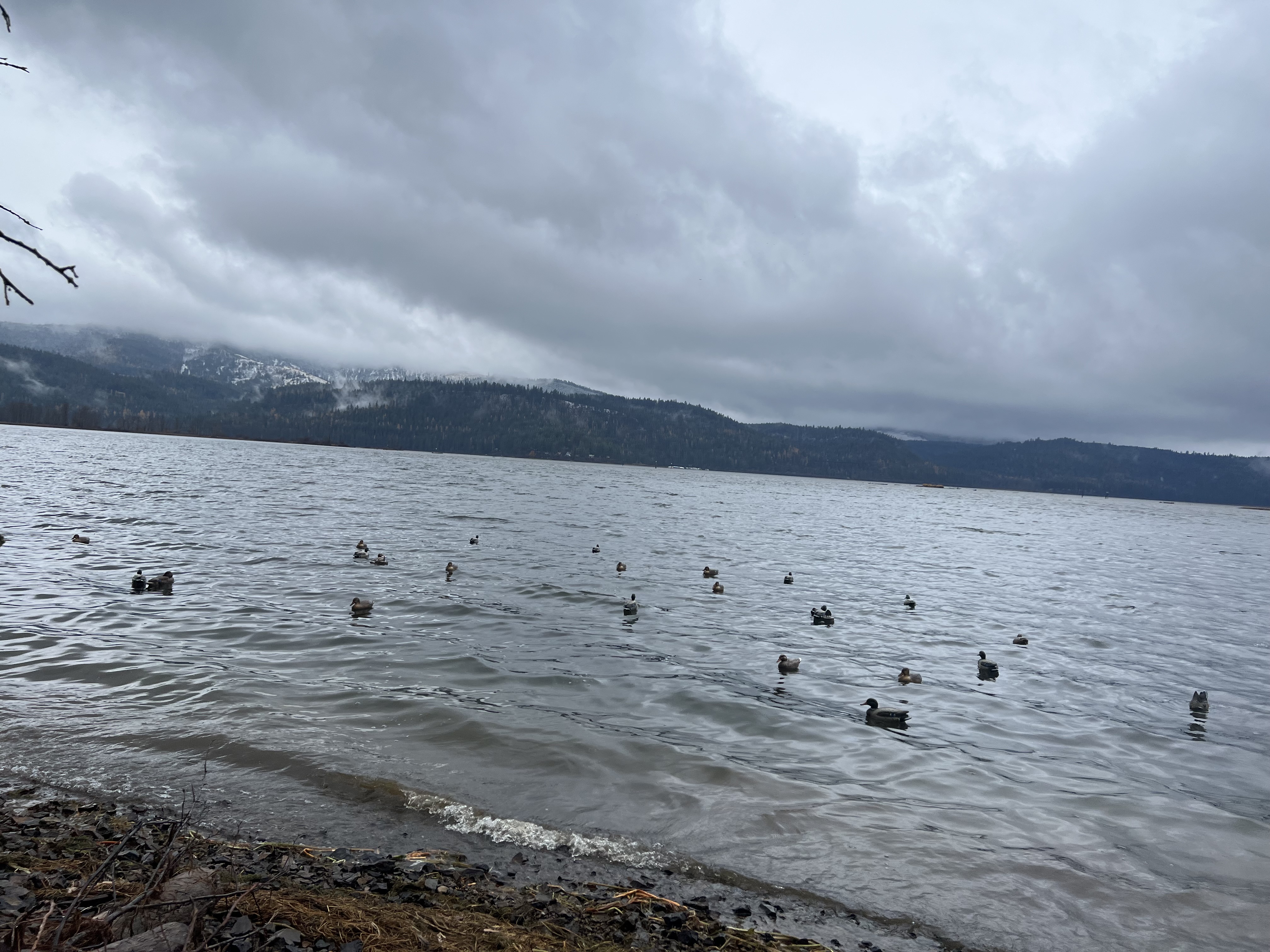 I trade spots in the blind with my husband, who has been eating snacks and picking up trash on the shore with our two year old. He drops another bufflehead in the first five minutes, it zooming by at the presumed speed of 500 mph. He’s feeling cocky that the hunting is picking up, but not another bird comes within range. In the middle of the lake, waves upon waves of birds lift, wings glimmering, then resettle in a slightly different location. We decide we’ve had enough of trying to compete with the thousands of live decoys and start packing up. Other hunting parties start filtering past, apparently everyone has decided they’ve spent enough time moonlighting as birders in the inclement weather for one morning. At the launch, reports of the morning are the same all around; only one or two birds per party. Everyone was sure the weather was going to make a stellar day of hunting. I can still hear the echos of the chuckling duck gods.