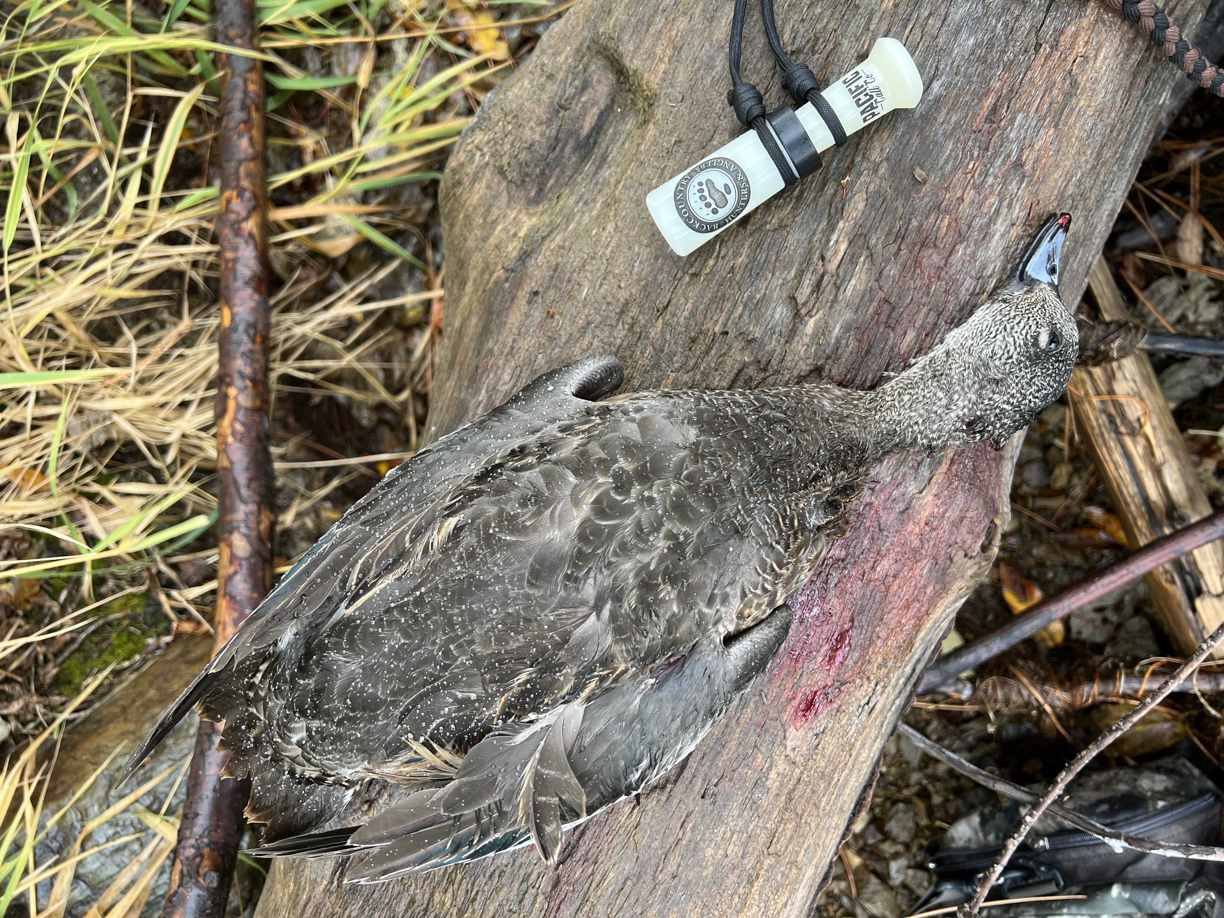 A lone widgeon does a close enough look and Jacob is able to get a shot off. The dog goes out after it, but it was a wing shot, and the duck leads the dog on a chase for a hundred yards. As the dog closes the distance, the bird dives and doesn’t come up. The dog circles, looking perplexed as the bird still doesn’t surface. I call her off and get the kayak. Watching from the shore, Jacob still hasn’t seen the bird as I head out with strong paddle strokes to the last approximate spot. I scan the area and see something funny about 75 yards further away. The vegetation is poking up above the surface of the water here, so I don’t have much faith in my long distance vision, but as I paddle closer the spot disappears. It comes back up again a little further, but my kayak strokes are quicker than the dog was swimming. I close the distance and glide forward to a stop, raise my gun and wait for it to surface again. It comes up, but only the beak and head plane above the water. On it’s next breath and I try a shot, but there isn’t enough of a target above the refraction of the water and the bird manages to avoid the spray. I paddle closer and we engage in a dance where I spin circles in the kayak trying to cut her off and she dives just out of glove range, skimming under the kayak several times. She can’t fly, and she can’t even fully swim, but her will to evade me is strong. Finally, I chose the correct direction to spin and she choses the wrong direction to surface and I nab her with my gloved hand. I twist her neck and scramble her brains, trying to end her suffering quickly. I deliver her to Jacob’s hand.