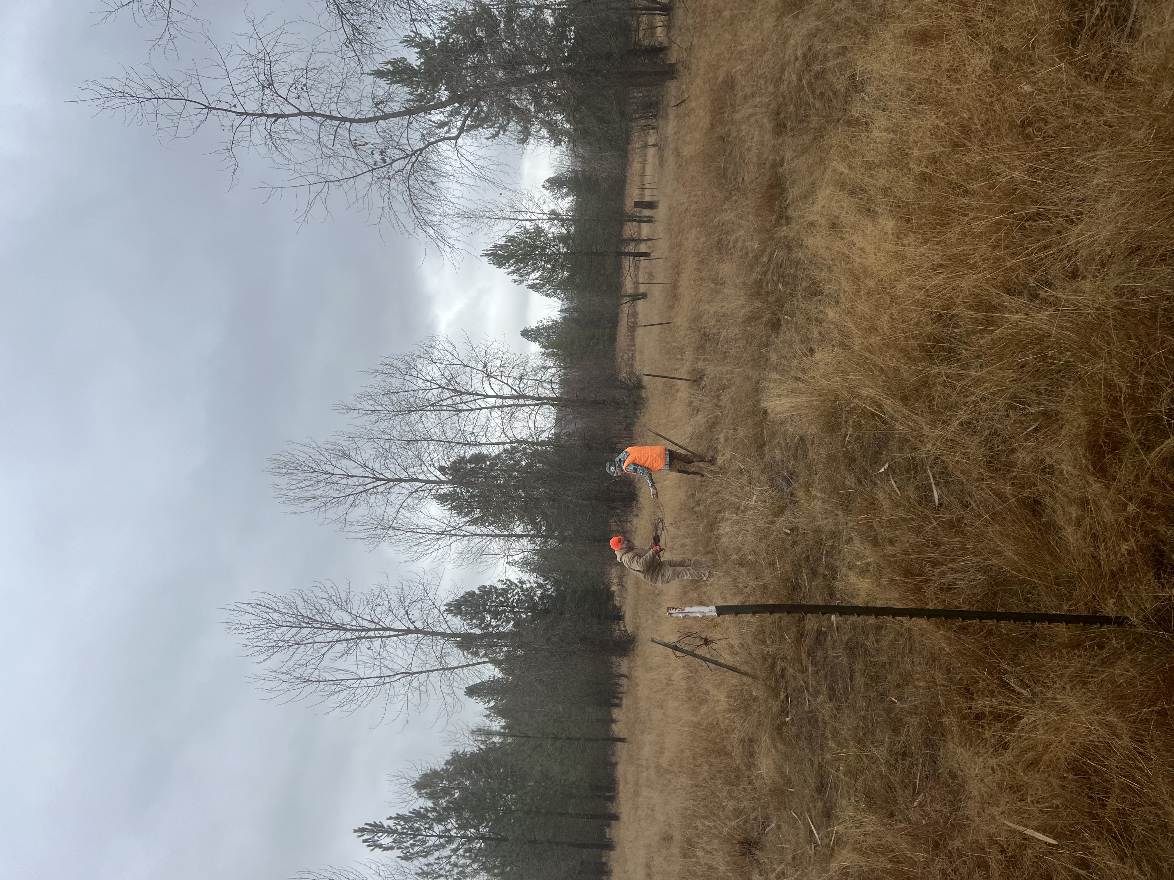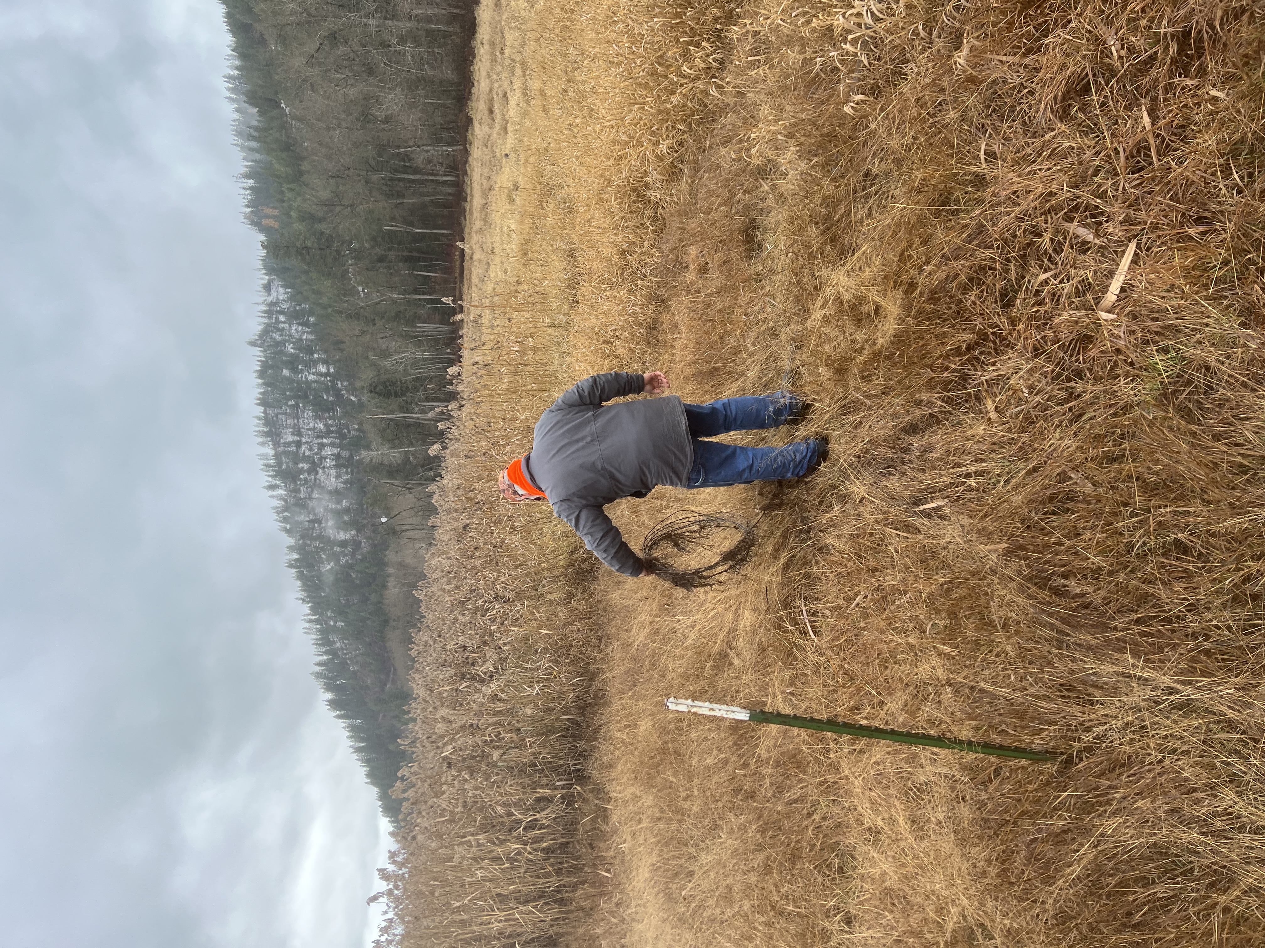 After hot grilled cheese sandwiches, we head up the road to the location of the afternoon's stewardship project. A message from a friend coming from the direction of town reports that it’s snowing like crazy, so my hopes of any last minute participants aren’t optimistic. We have five brave souls at the parking area, plus a two year old and a slightly tired bird dog. Donning hunter orange, we trudge down into the wildlife management area (WMA). Ten minutes in and my son and dog have already tripped over the barbed wire that we are here to remove. This illustrates to the party the need for this project.