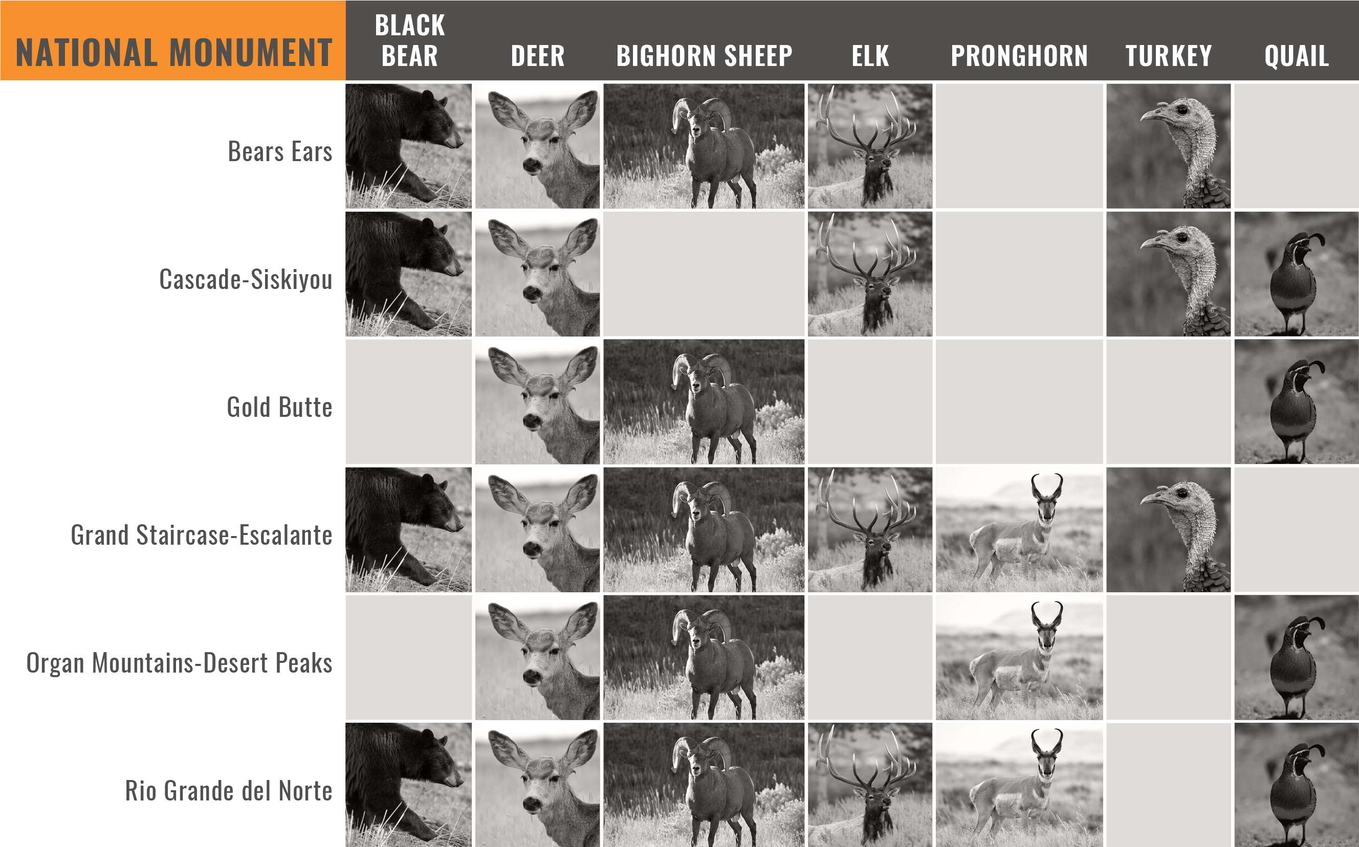 Public lands and waters conserved through the Antiquities Act have sustained incredible opportunity for hunters and anglers, from bighorn sheep and sharp-tailed grouse in the Upper Missouri River Breaks National Monument in Montana, to Rio Grande cutthroat trout in the Rio Grande Del Norte National Monument in New Mexico.[11]
