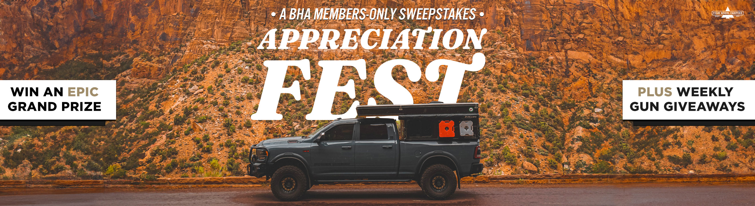 Join us! This fall, we've been celebrating BHA's 20th anniversary with our first-ever Appreciation Fest Sweepstakes! From a Project M Topper to a weekly 🔫 giveaway, the prizes are epic, and they’re ONLY open to current and future BHA members. Whether renewing or joining, secure your chance to win today! Sweepstakes ends Oct. 6, 2024.
