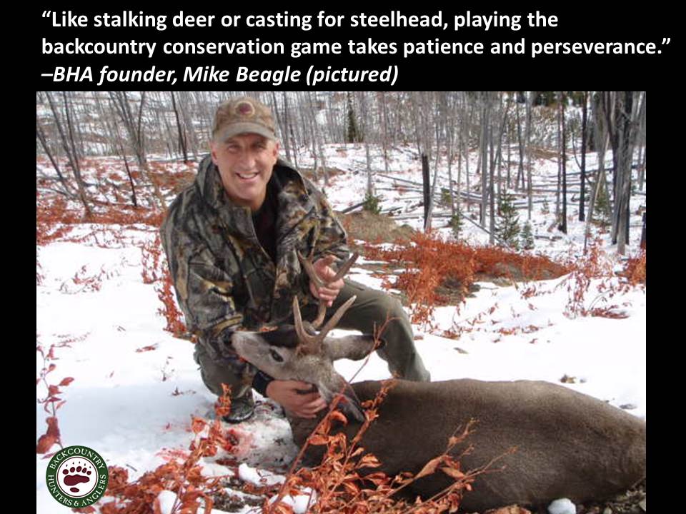 Founded by Mike Beagle, a former U.S. Army field artillery officer, and formed around an Oregon campfire, in 2004, Backcountry Hunters & Anglers is the voice for our nation’s wild public lands, waters and wildlife. With members spread out across all 50 states and 13 Canadian provinces and territories—including chapters in 48 states, two Canadian provinces and one territory, and Washington, D.C.—BHA brings an authentic, informed, boots-on-the-ground voice to the conservation of public lands. The Colorado BHA chapter was founded by David Petersen (a former U.S. Marine Corps helicopter pilot) in 2005 (the first official BHA chapter).