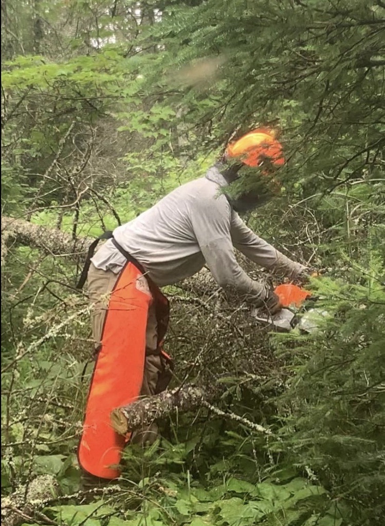 After reviewing the maps provided by the U.S. Forest Service, volunteers broke into two groups, each starting at opposite ends of the trail to ensure maximum coverage. The rest of the day was spent working to clear the trails. Chainsaws operators bucked downed trees while weed trimmers buzzed through dense brush. Volunteers took care to maintain the natural beauty of the forest, ensuring that the trails remained accessible yet respectful of the surrounding habitat.