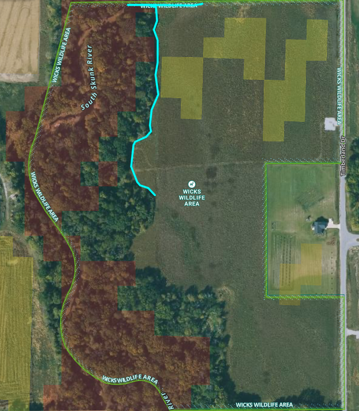 This work day was a continuation of a habitat improvement project started at Wicks in 2023 as an invasive species removal project by the Iowa BHA Chapter. Established as a public Wildlife Area in 2019, Wicks Wildlife Area offers public access for fishing and bowhunting, with access to the water and a mixture of crop and deciduous tree cover. The parcel is 55 total ares.