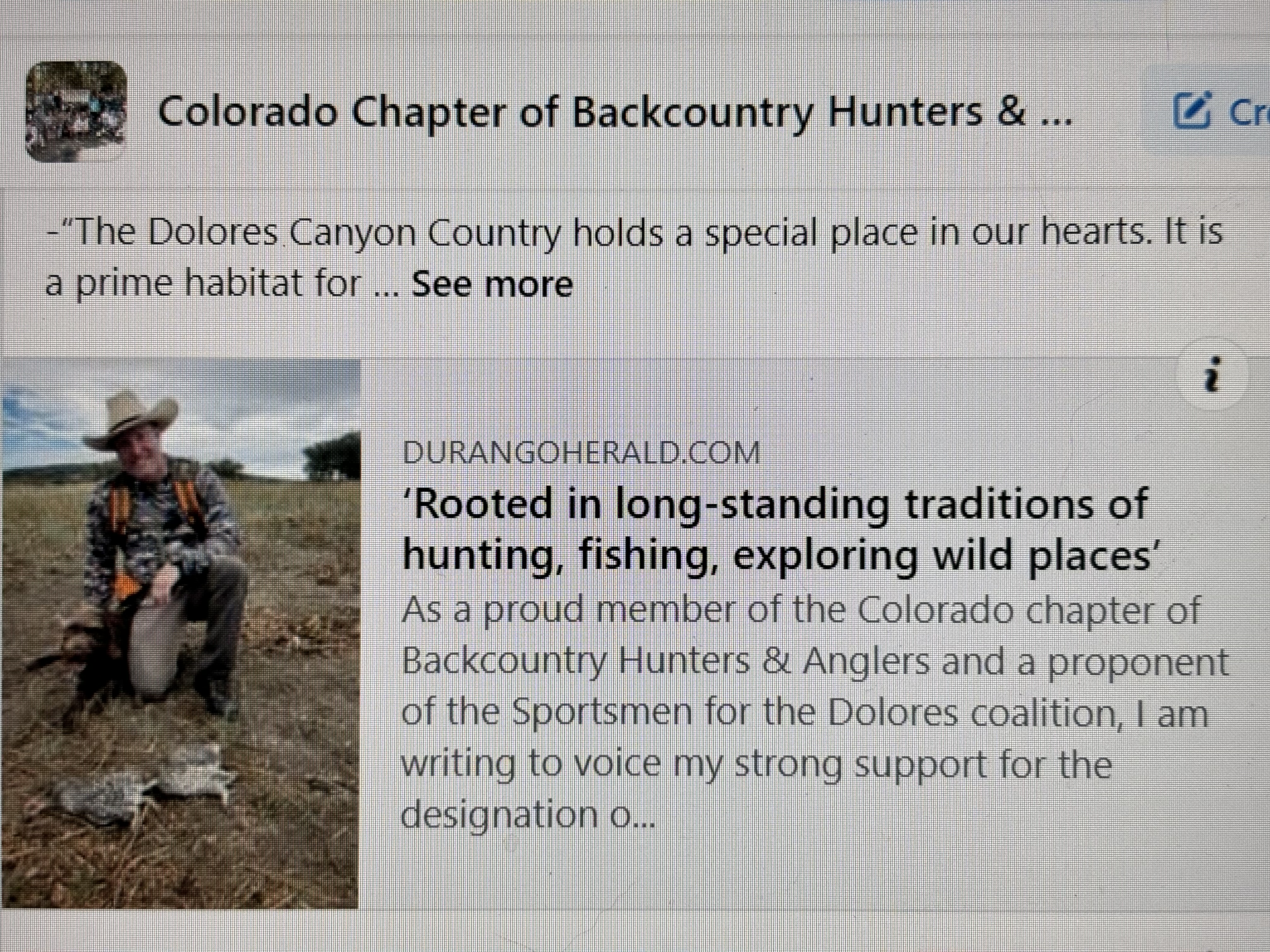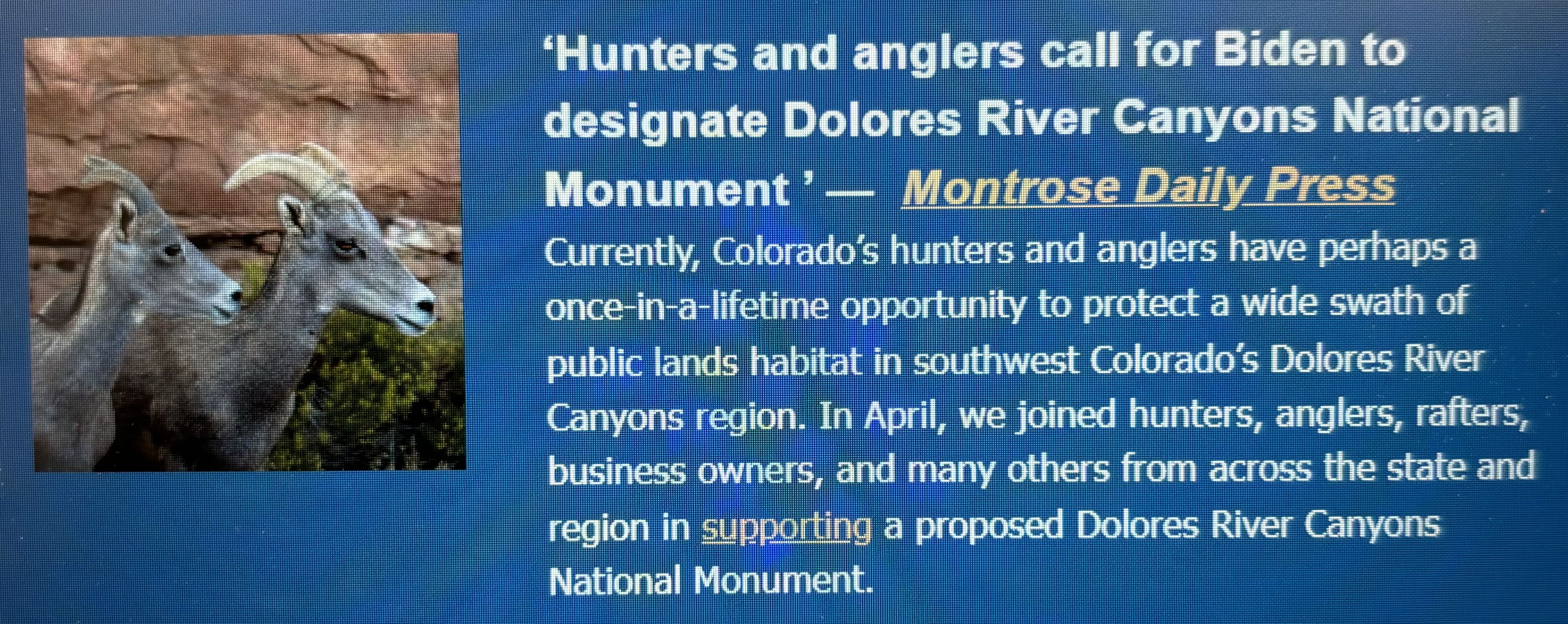-“Colorado Backcountry Hunters & Anglers Support Dolores River Canyons National Monument Proposal.” Backcountry Hunters & Anglers: 4/5/24.
