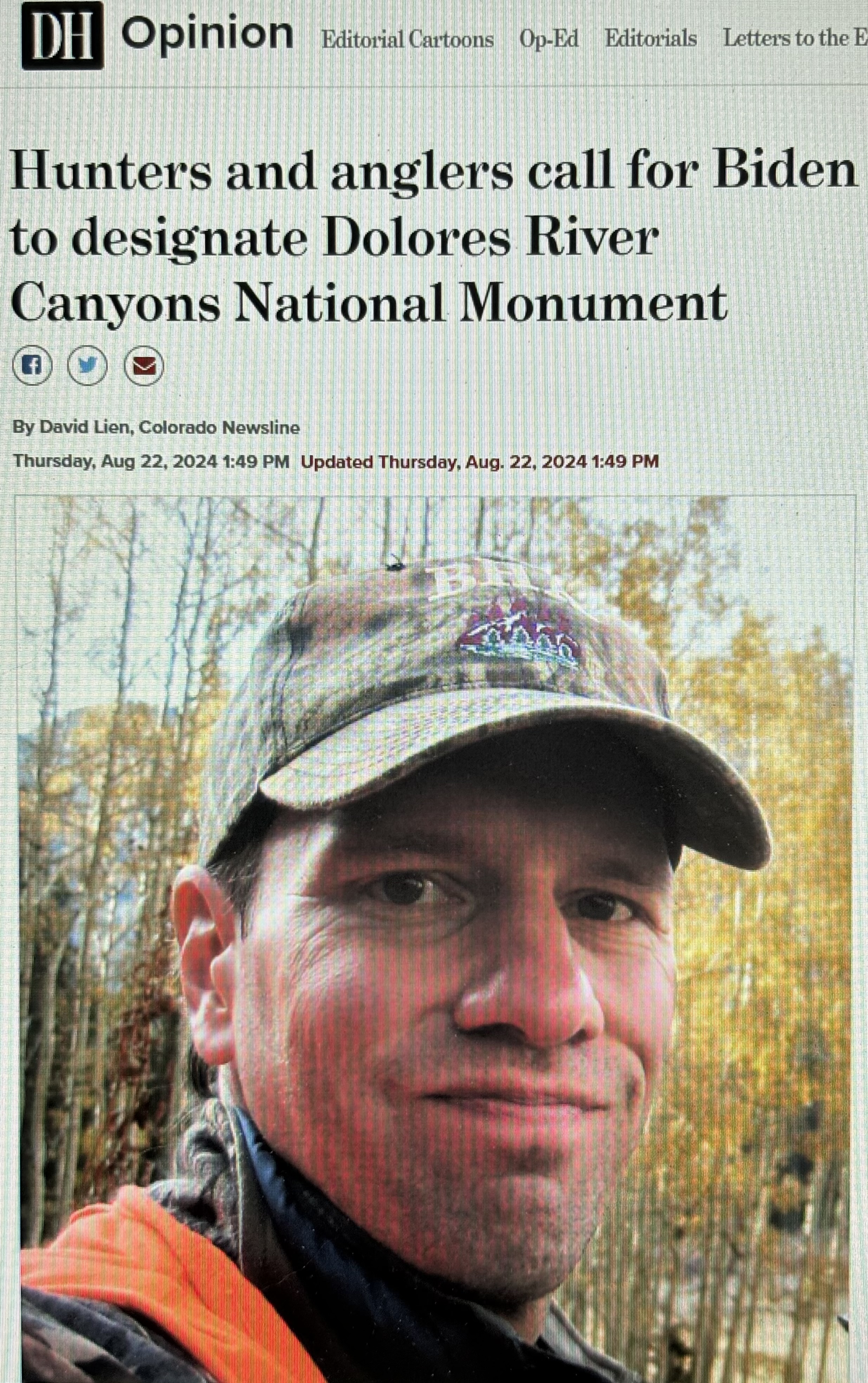 -“Hunters and anglers call for Biden to designate Dolores River Canyons National Monument.” Yahoo News: 8/21/24.