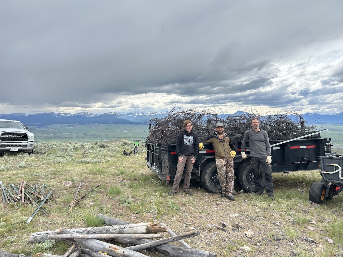 This shining example of Type II fun was completed as part of a partnership between BHA and the National Wildlife Federation (NWF) in their joint effort to improve habitat connectivity for big game species. This mighty workforce of volunteers removed 1.7 miles of dilapidated 5- to 7- strand barbed wire fencing from a US Forest Service-private land boundary. The old fence impeded movement of elk, mule deer, and moose, and posed the risk of injury and entrapment for big game. The malaise of barbed wire zig-zagged its way through sagebrush and into lodgepole forest, and was strung up along trees and old t-posts and buried under deadfall. Volunteers dealt with this chaos and tenaciously removed every last strand of rusty wire from the landscape. After removing the old fence, a new "wildlife-friendlier" fence will be installed on this boundary, which is designed to allow the passage of wildlife while effectively containing livestock, offering a win-win solution for wildlife and livestock producers.