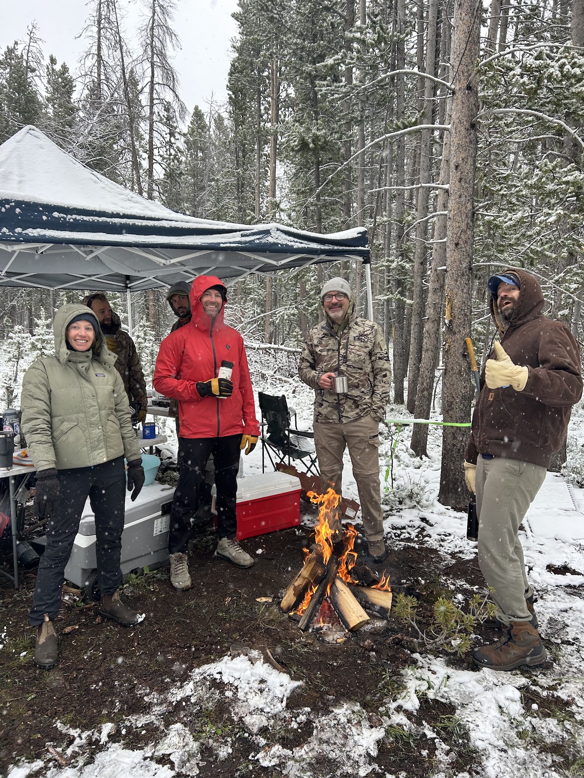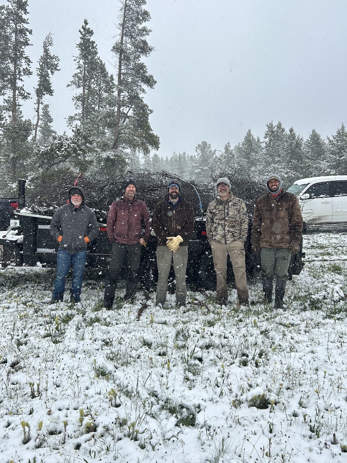Adding to the fun, temperatures hovered between 28 and 35 degrees (Fahrenheit) the whole of the weekend. We spent two-nights camping, and awoke to a fresh coating of 1 or 2 inches of wet snow each morning. With the comfort of a campfire, cheap coffee, and elk burgers, we couldn't help but smile at the absurdity of the whole endeavor. And a soak in Jackson hot springs when the work was done helped, too! Gazing out over the Big Hole Valley and the snow-capped Beaverhead Range, we left with a sense of satisfaction of knowing our efforts improved habitat for the wildlife we cherish and hunt. Thank you to the volunteers and to NWF for facilitating this important stewardship of our lands and wildlife!