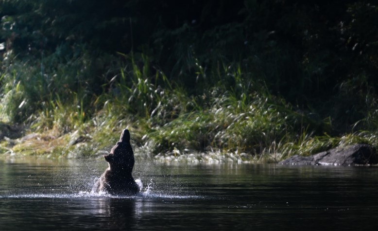 Photos: (Top) Bald Eagle. (Right) Coastal Brown Bear swimming off the coast of Admiralty Island.