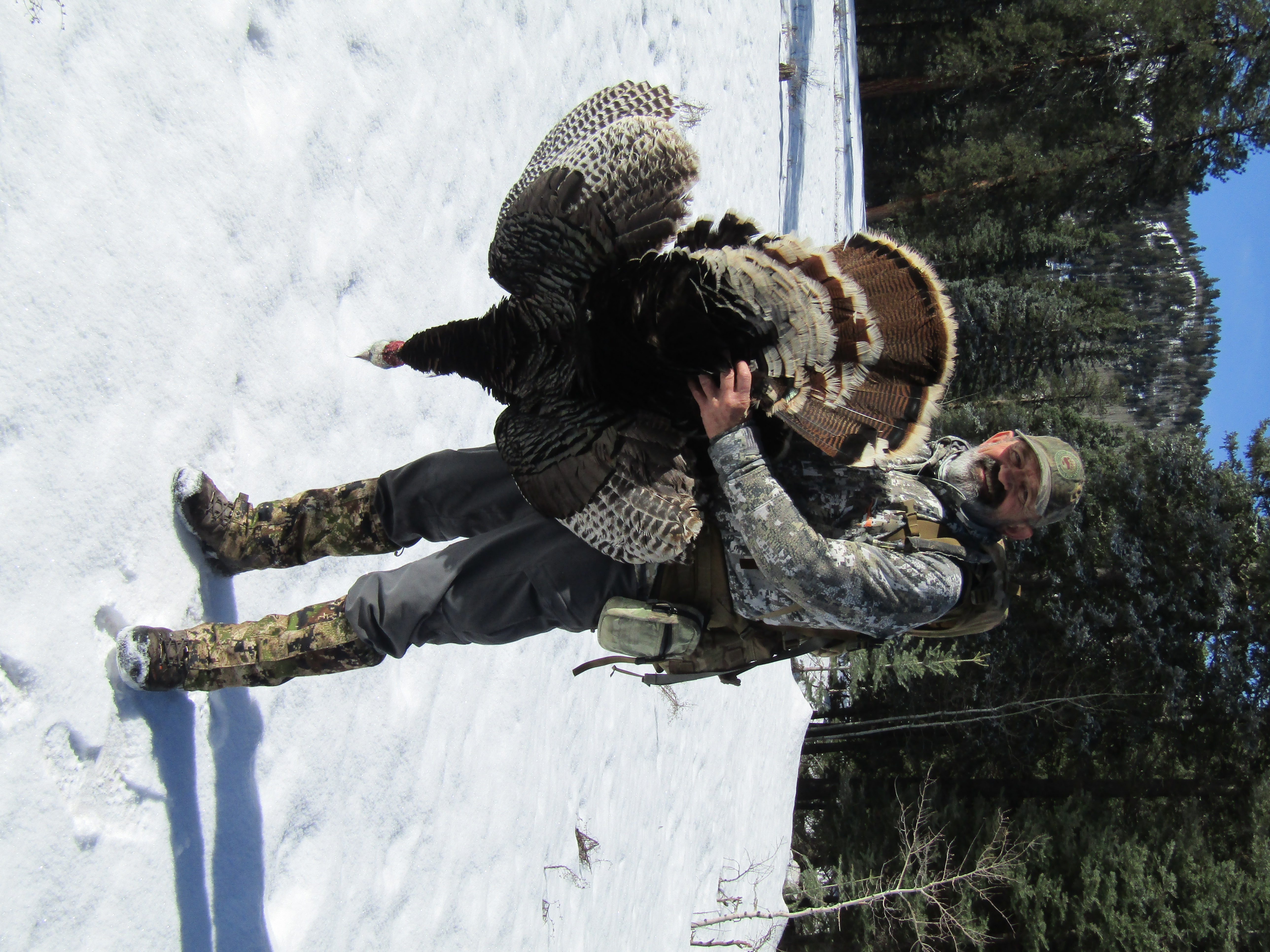 On April 13 Rick was out scouting the local turkey hunting haunts again. “I heard what sounded like two different birds … Lots of crunchy snow so I didn’t go far,” he said. “The creeks are raging so it’s definitely melting fast … I’ll get back out next week. It’s currently snowing up high. Supposed to get another 8 inches or so above 9,000 ft.” I heard similar stories from other mountain Merriam’s hunters.