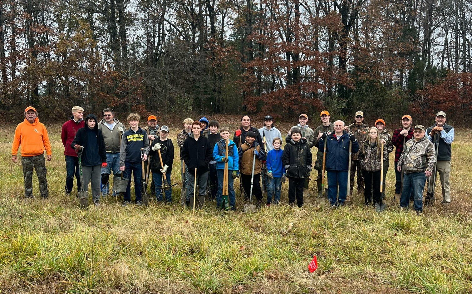 After the hunt, we headed down the road and picked up trash along the road for a couple of minutes and filled up multiple trash bags. After picking up trash, we headed to Paducah to help a boy scouts crew plant hazelnut trees to help improve habitat for a resident quail covey. After planting, we ended the eventful day by cleaning the squirrels we had previously shot in the morning, with the patient direction and advice of Kevin and Paul. A fun time was had by all!