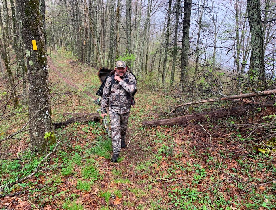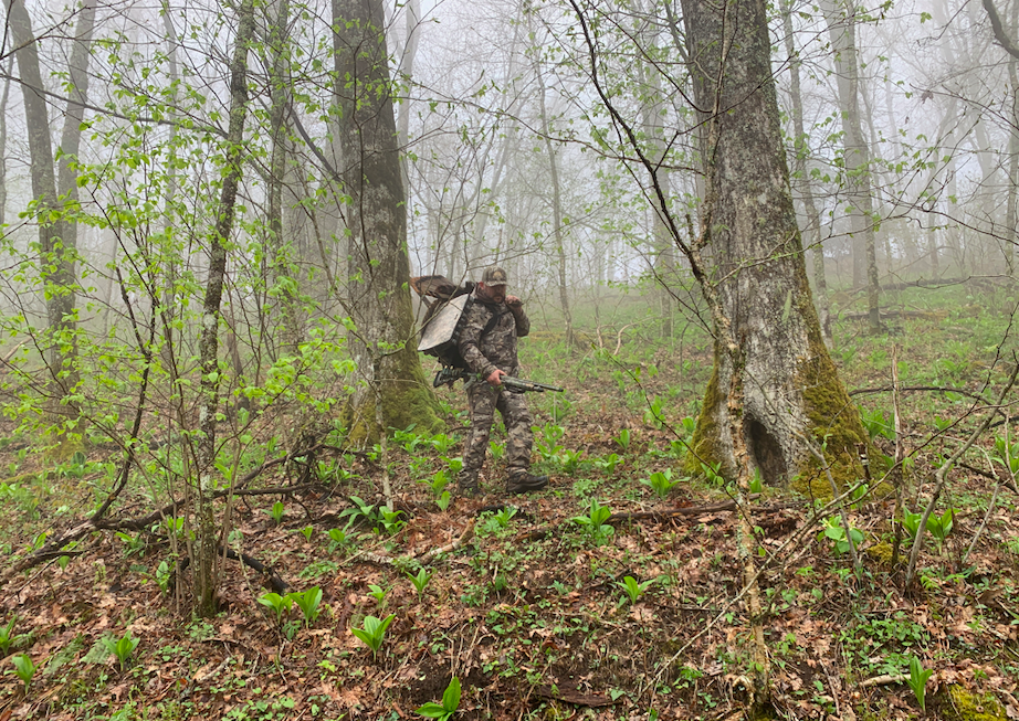 After an action-packed day with lots of turkey action we went right back at them on the second morning. The weather the night before was rough with thunderstorms rolling through, which led to a late start that morning. We worked our way back into the same area as the day before, calling every once in a while, hoping to locate that that tom again. Unfortunately, all was quiet on this cold and wet morning in the mountains. We set up in the spot we struck up that tom the morning before and gave it a couple hours but nothing game of it.