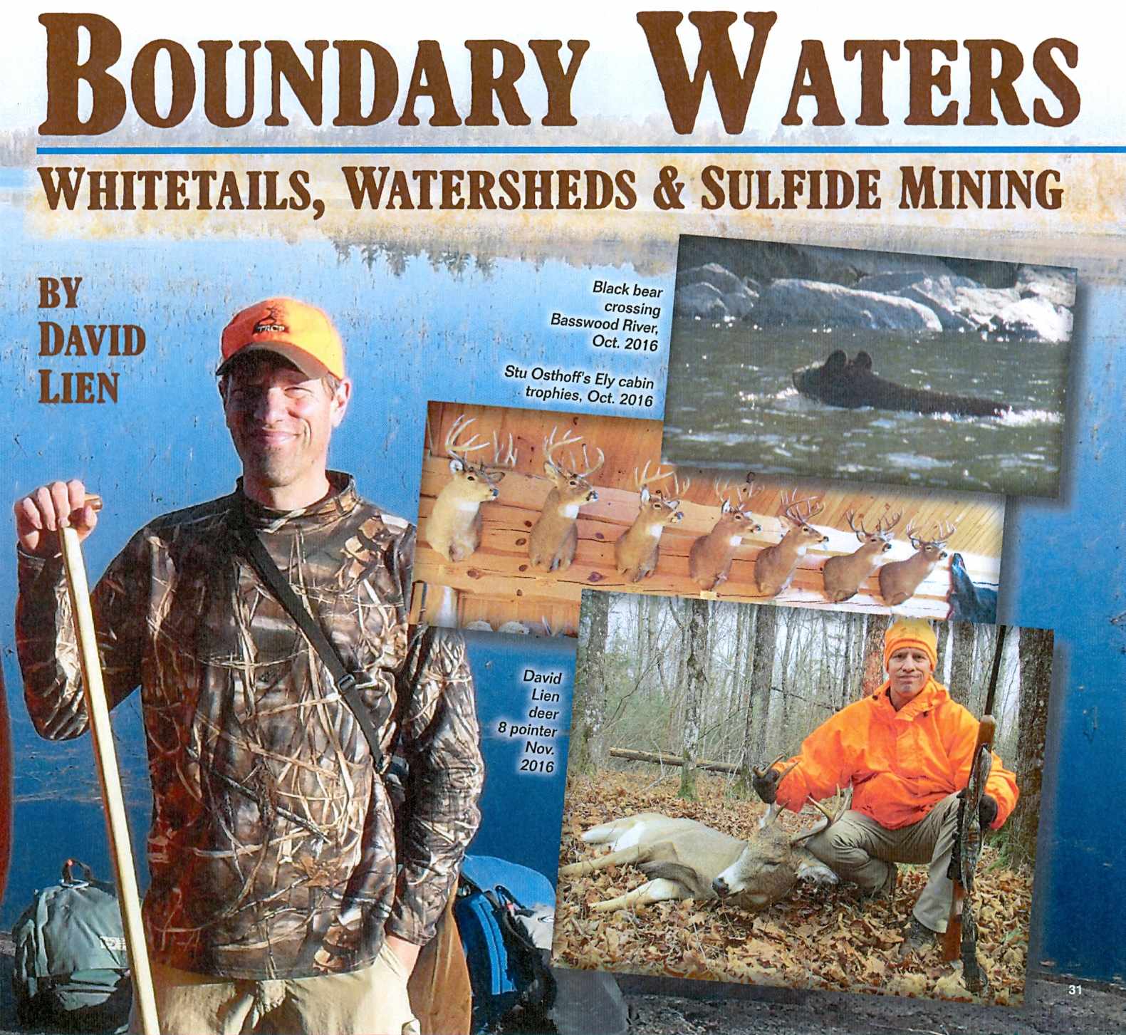-“Boundary Waters Whitetails, Watersheds & Sulfide Mining.” HuntingLife.com: 12/22/16.