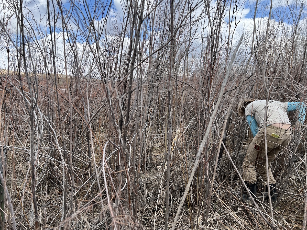 Day two we visited a friendly landowner who is entering into a conservation easement with CPW. He is a proud landowner and wildlife conservationist with a property loved by many species. In the Winter months it is not unusual to see 400 head of elk on the property and in the spring he has birders from all over the world come to see the sharp tailed grouse and greater sage grouse leks on his property. At the ripe age of 86 he can't possibly accomplish all he would like to improve his property for wildlife and we were happy to lend a hand.