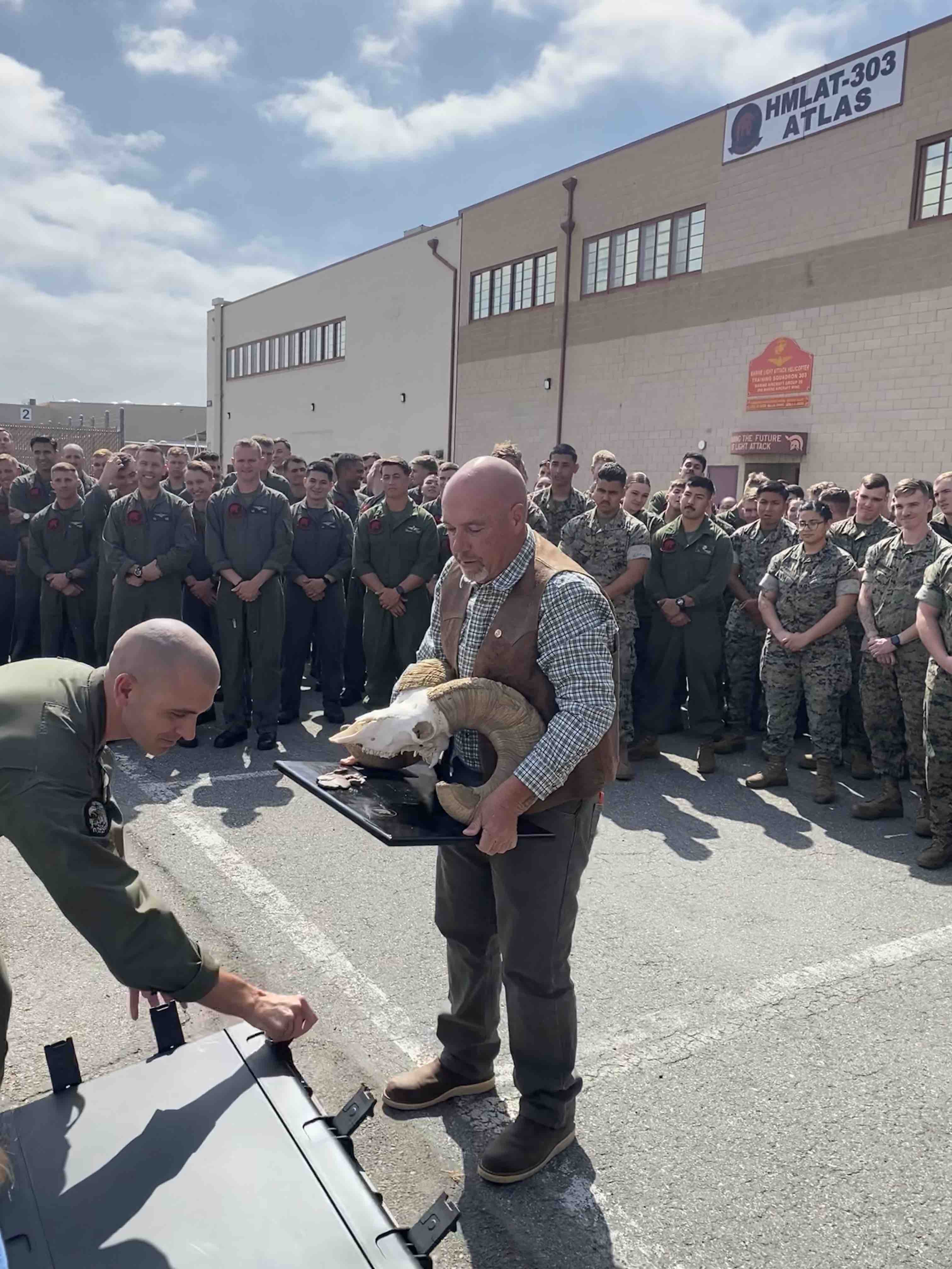 Last year, Gibson and BHA's Western Policy & Conservation Manager, Devin O'Dea presented the Marine Corps Squadron with a commemorative plaque and ram skull to thank the Marines for their service to bighorn sheep as well as our nation.