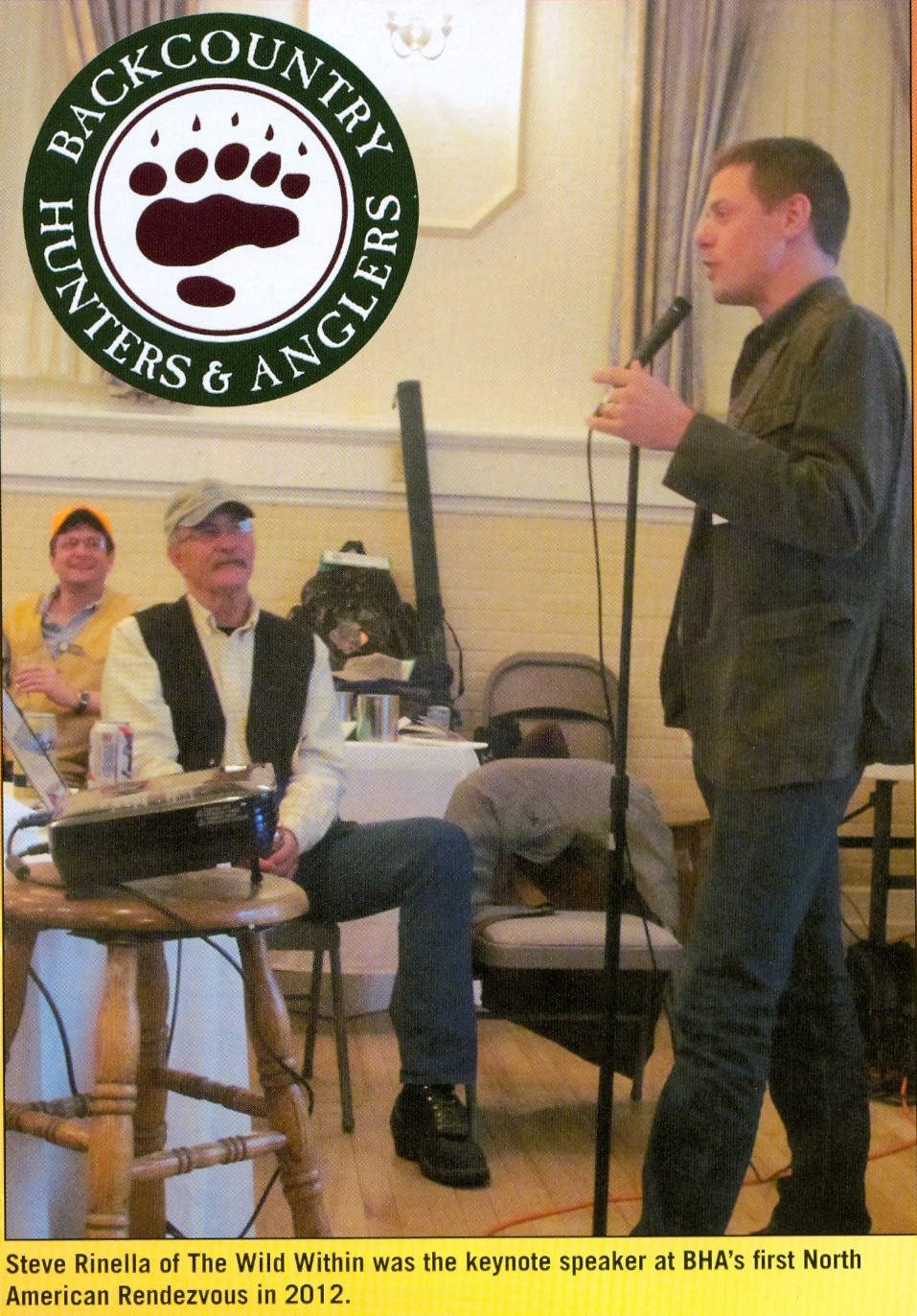 The 1st annual BHA North American Rendezvous was held at Fort Missoula, Montana, during March 2-4, 2012. The keynote speaker was MeatEater personality Steven Rinella. I recall being impressed by his engaging presentation and easygoing demeanor.[22] Rinella recounted some of his countless hunting and fishing stories and explained “how backcountry turned me into who I am now. There’s a spiritual component to it.”[23]
