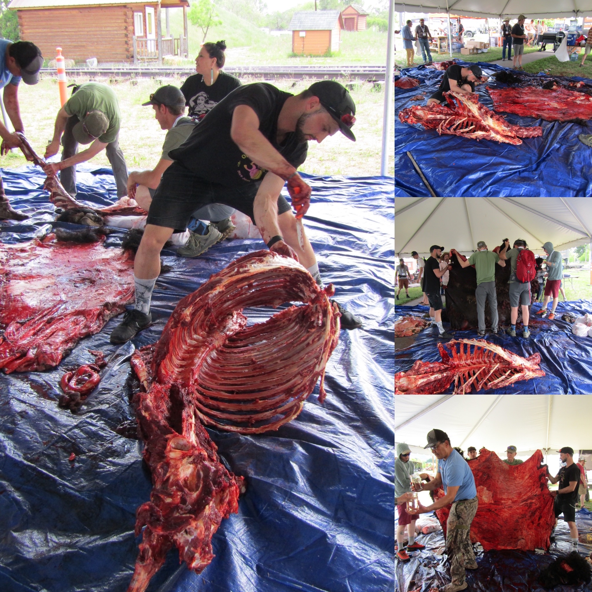 At the 10th annual BHA North American Rendezvous, also held at Fort Missoula (June 3-5, 2021), we participated in a ceremonial bison butchering, a “Buffalo Breakdown,” guided by Blackfeet tribal members.[28] Montana state House Rep. (and Blackfeet Tribe member) Tyson Runningwolf initiated the bison butchering partnership.[29]