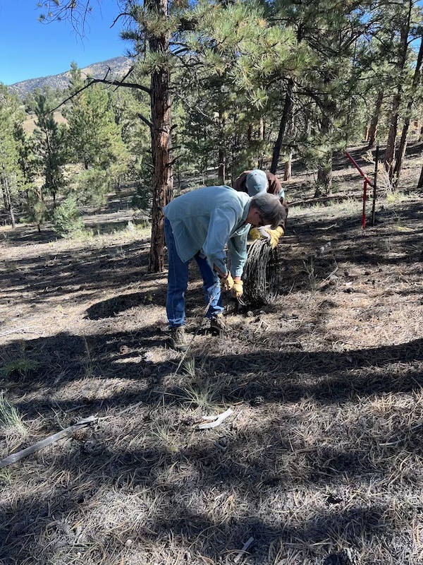 Members of GARNA tackled a 1/4-mile section of this fence in 2023, and we were here to finish the job. The fencing was part of an outdated grazing scheme within a USFS grazing allotment and was no longer needed. The volunteers were eager to get started and after a few instructions and a brief safety talk they grabbed BHA provided tools and jumped in. A much enthusiastic effort of clipping, rolling up the wire, and taking out T-Posts commenced and before I knew it, it was all gone. Standing there a little confused at the pace I glanced at the time and realized we had pulled .4 miles of fence in a little under 3 hours!