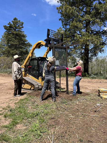 A stewardship project grant from onX Hunt supported the cost of the kiosk. “Stewardship projects” are those that rehabilitate or restore land where overuse or abuse are negatively impacting recreation and wildlife habitat, as well as those that build sustainable trails or restore trails that need maintenance, especially those at risk of closure. Money can be used for construction costs including materials, hired labor, equipment rental, and tools, and this grant funding allowed this project to get off the ground.