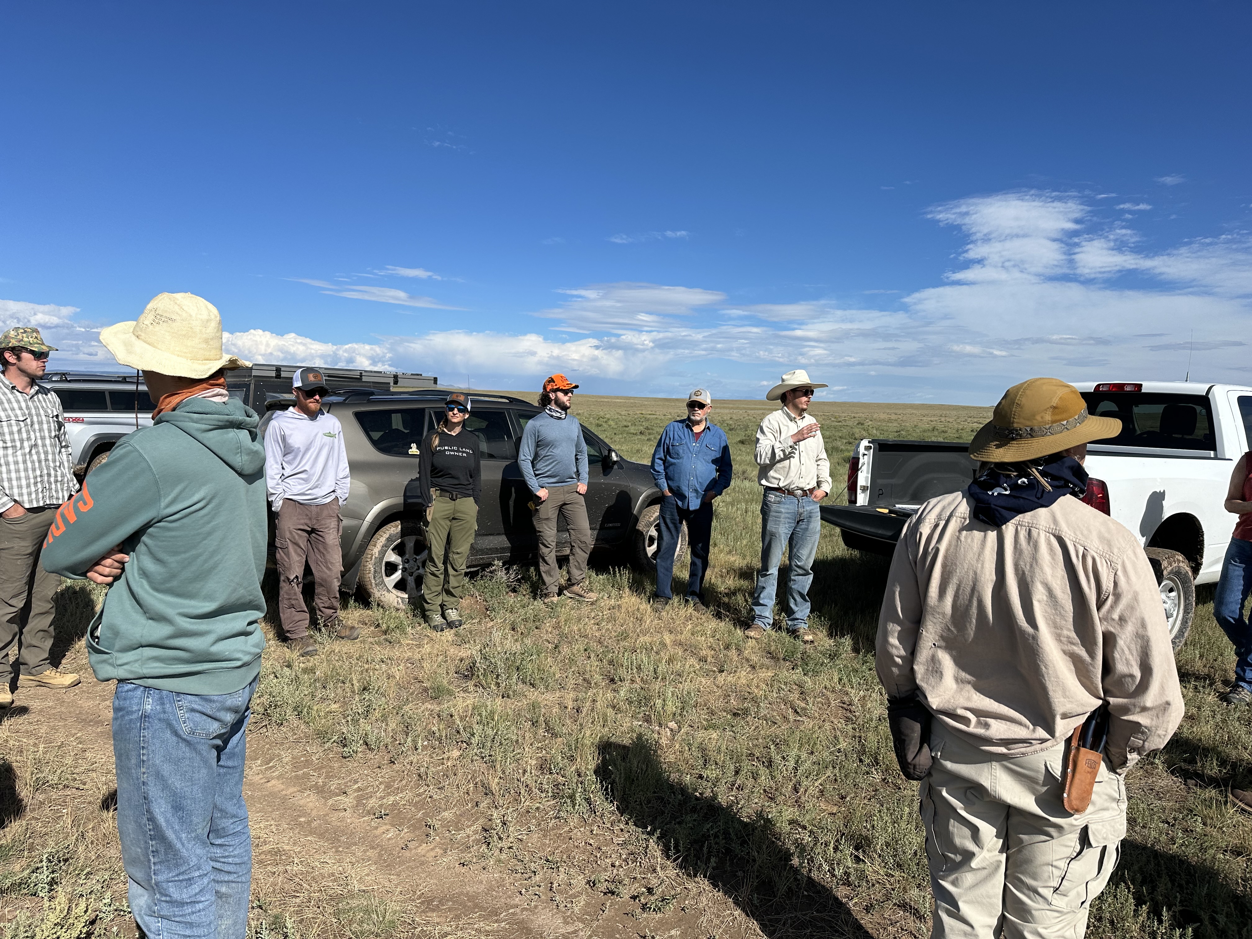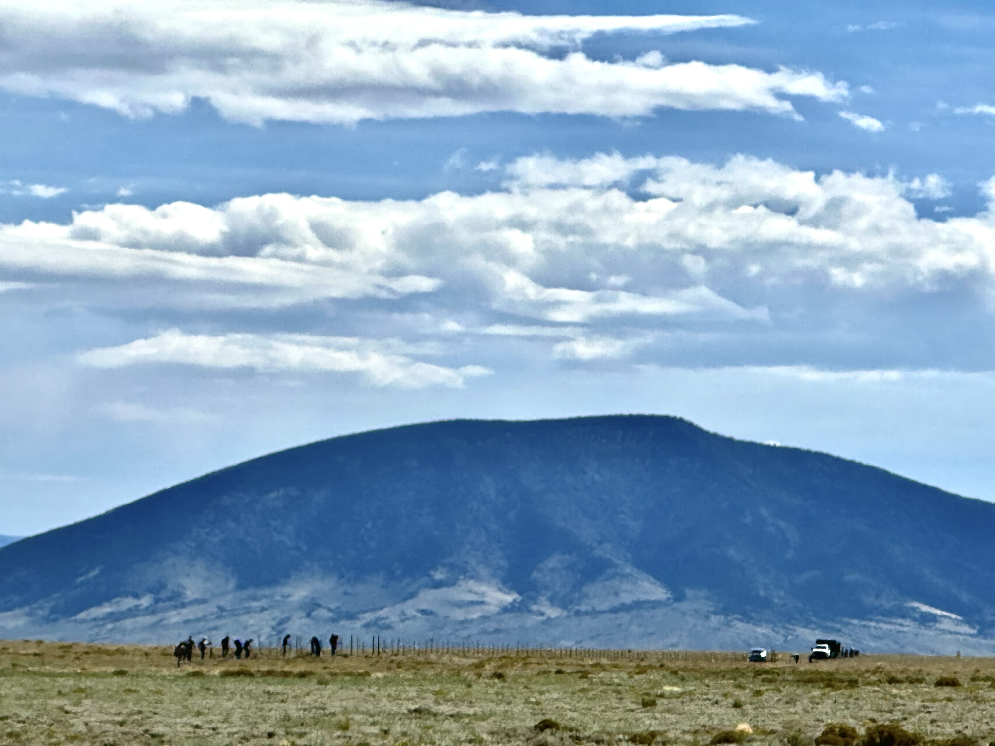 On August 24, 2024, 17 BHA volunteers along side BLM staff, Pheasants Forever staff and Habitat Steward Coordinator Bard Edrington drove out the bumpy muddy road to the center of the plateau. This vistas are wide and long in this part of New Mexico. The plateau is surrounded by old volcanoes like San Antonio, Ute and Pot Mountain. On the east side of the plateau the Rio Grande cuts a deep channel before you reach the base of the Sangre De Cristo Mountain range.
