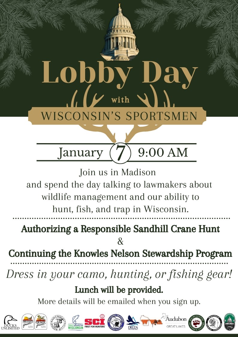 Join your fellow sportsmen to spend the day talking to lawmakers about wildlife management and our ability to hunt, fish, and trap in Wisconsin.