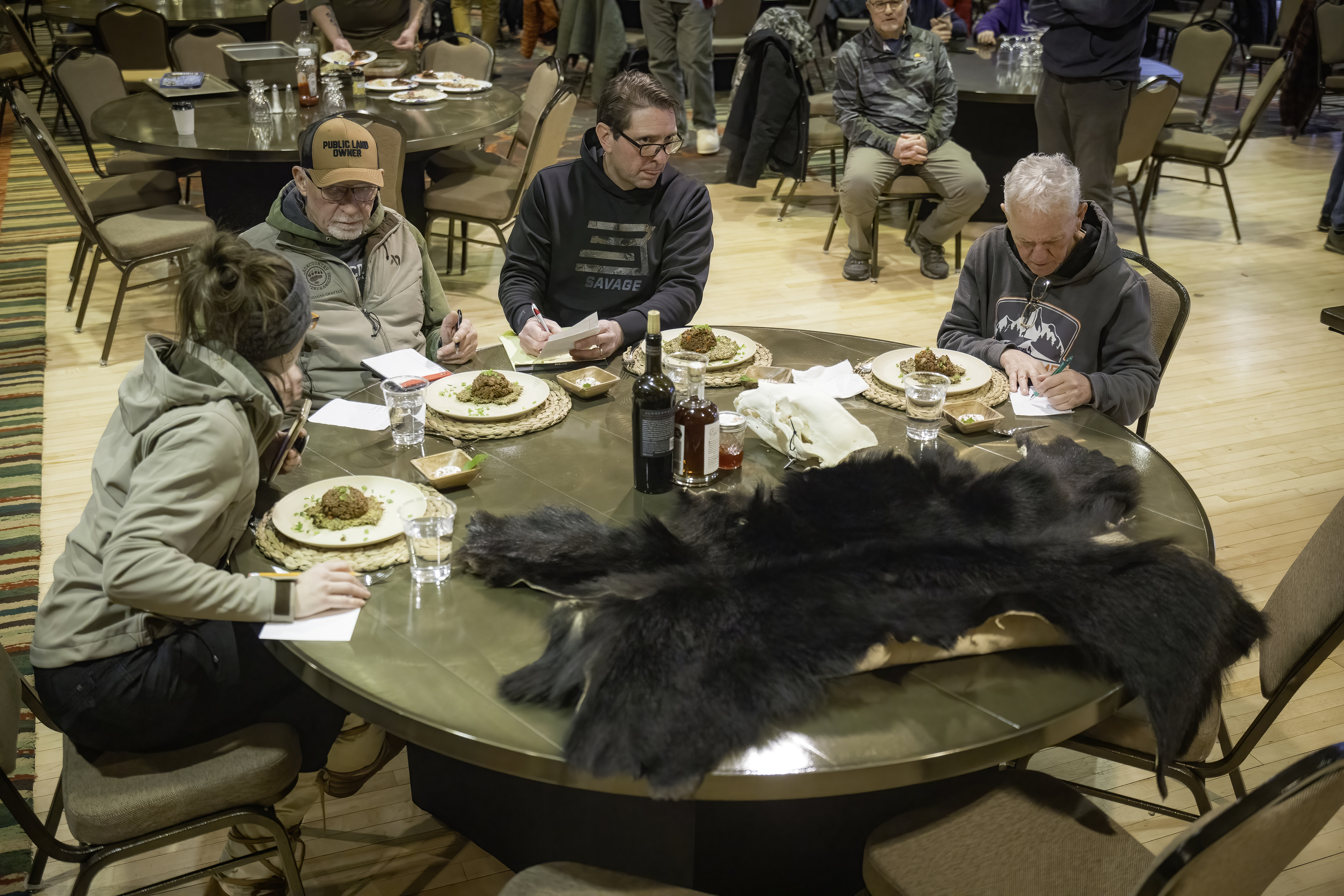 During social hour, four judges sampled dishes from five wild-game cooking teams in a friendly competition. Eli Mansfield’s bear sloppy joes served over a wild rice cake earned top honors as the Wild Game Cookoff Champion.